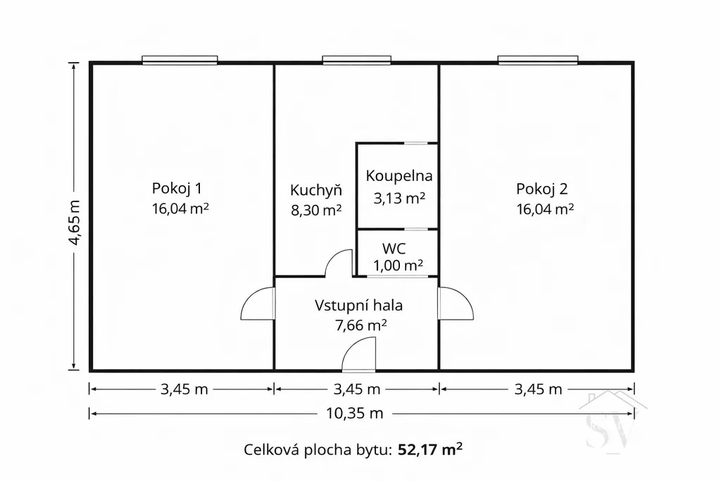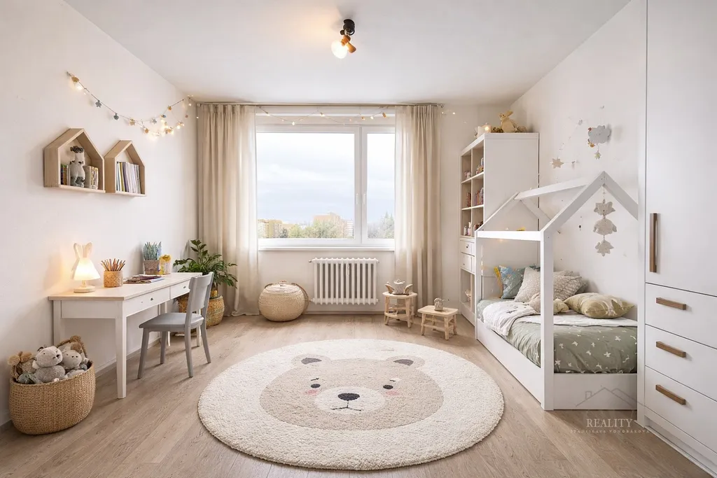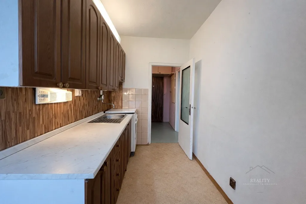Velkou předností nemovitosti je praktické dispoziční řešení. Dva samostatné pokoje jsou umístěny po stranách bytu, zatímco centrální část tvoří kuchyň a sociální zázemí. Toto uspořádání přirozeně odděluje obytnou a klidovou část a zároveň nabízí zajímavé možnosti budoucích dispozičních úprav.