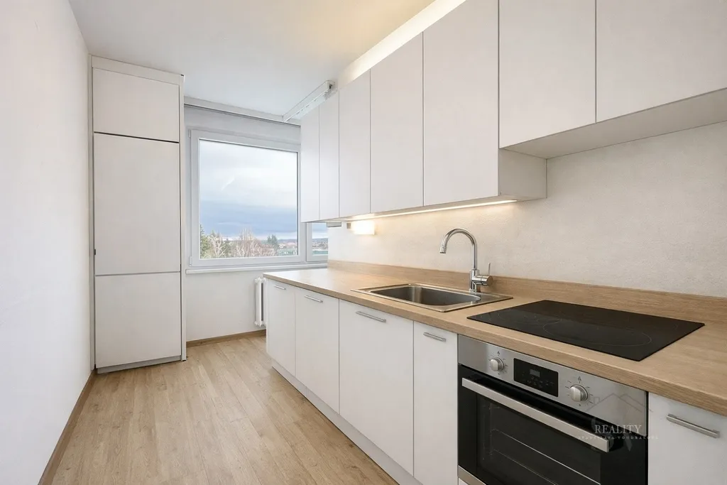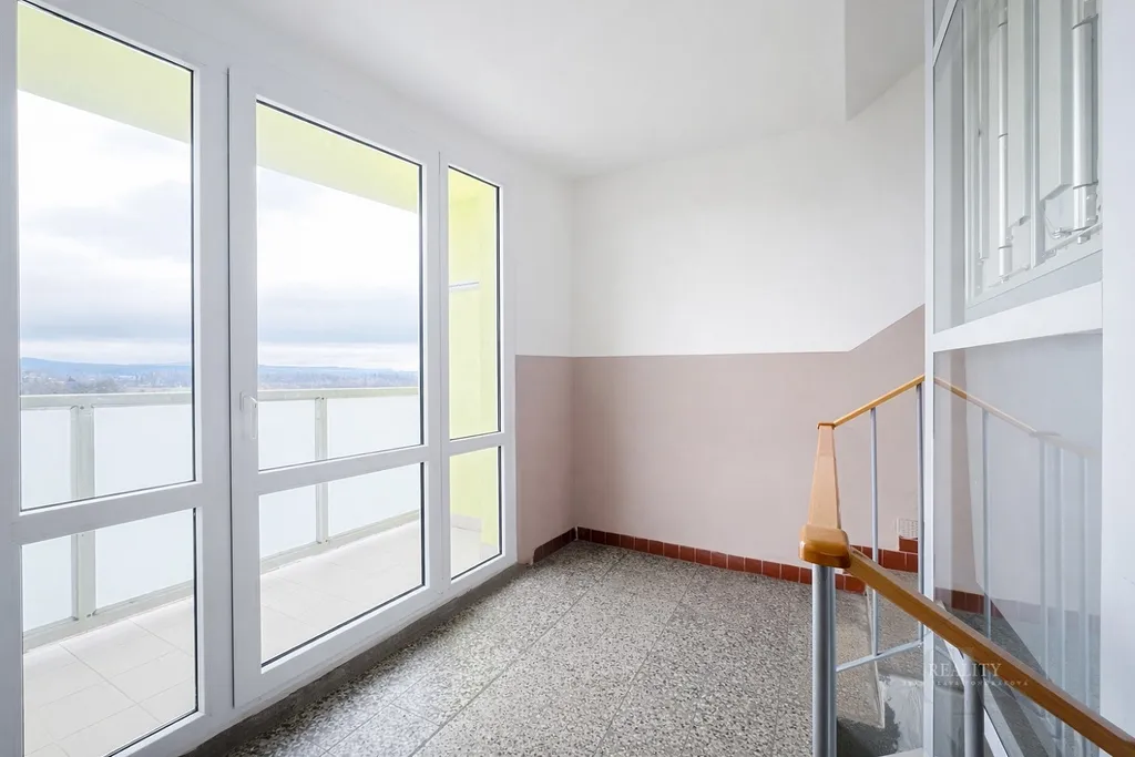Díky umístění v 7. nadzemním podlaží poskytuje byt dostatek soukromí, příjemný výhled i velmi dobré prosvětlení.