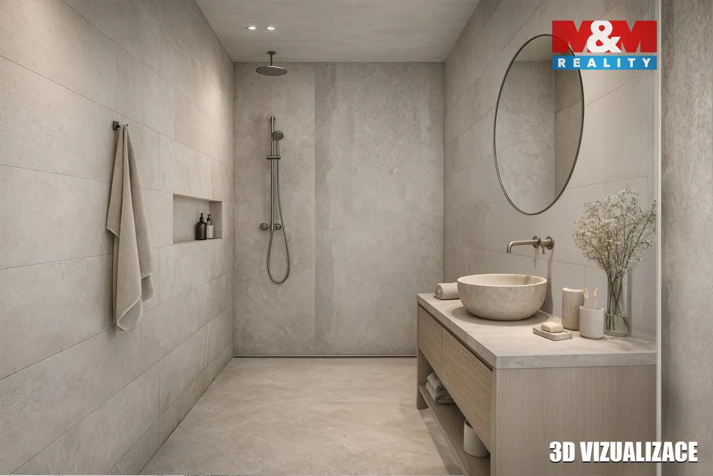 Dispozice nabízí dostatek prostoru pro rodinu, součástí je lodžie a sklepní kóje. Velkou výhodou je možnost dokončit kuchyňskou linku dle vlastního vkusu a představ nového majitele. V inzerci jsou použité vizualizace stavu budoucího.