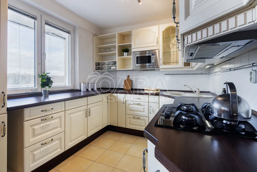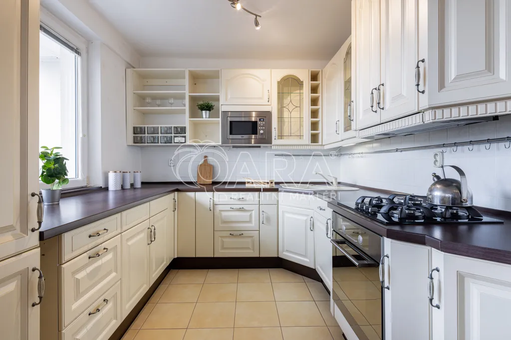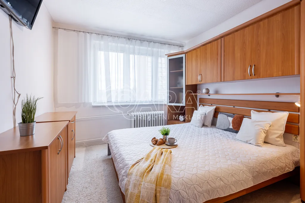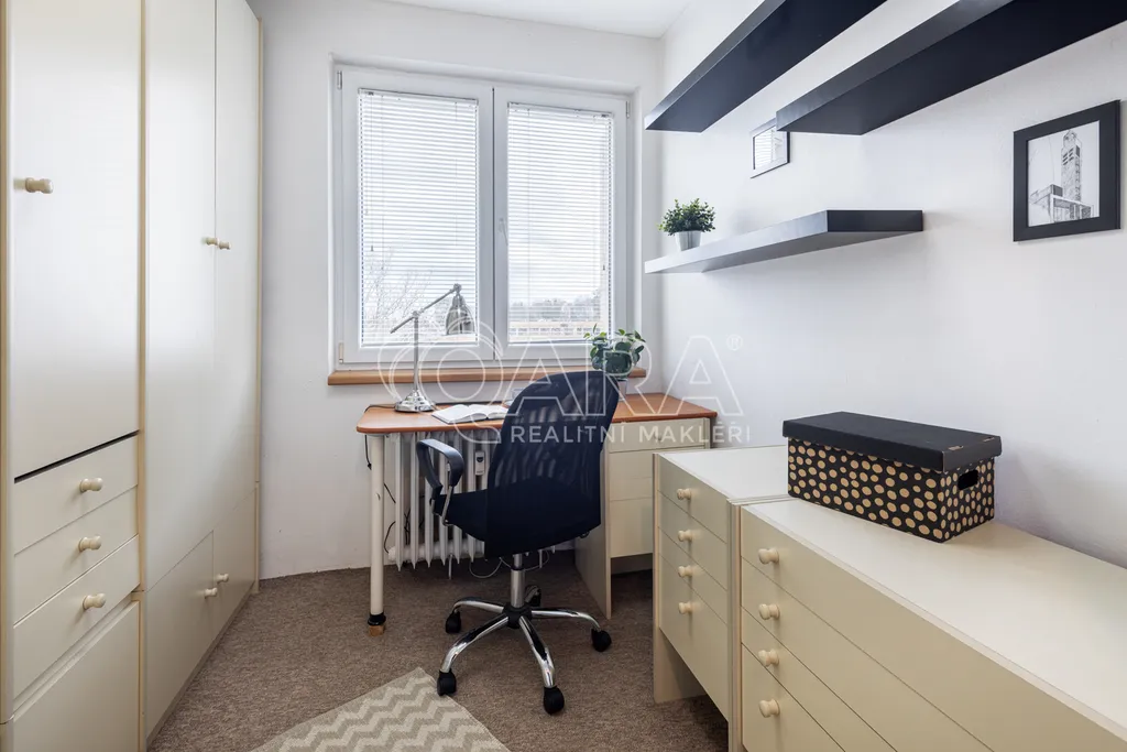Nečekejte žádnou modernu v developerském projektu, ale velmi dobře udržované bydlení a místo, kam se budete rádi vracet. Díky velkým oknům dost světla a parádní atmosféra.