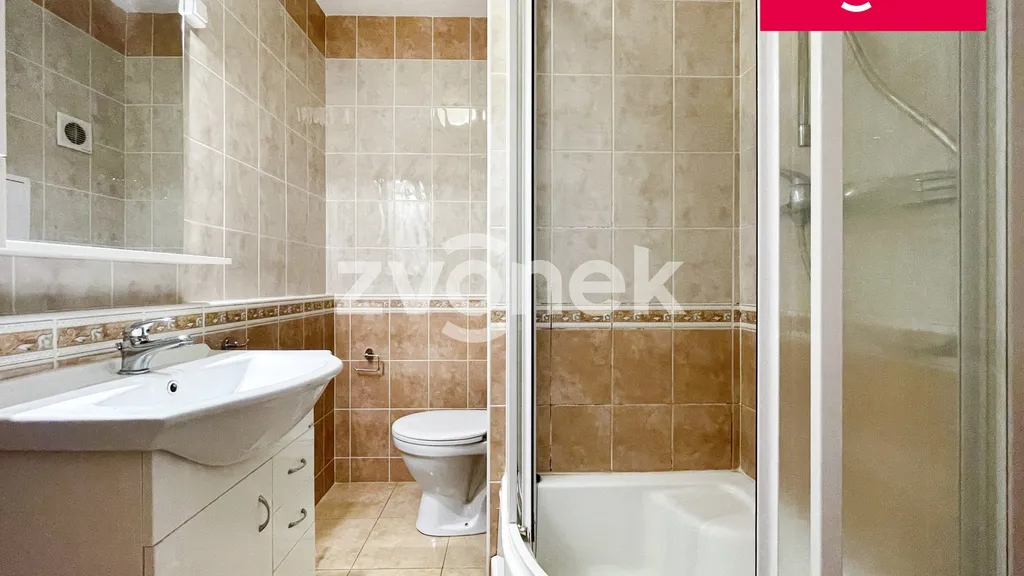 • Koupelna s WC – sprchový kout, umyvadlo se skříňkou, zrcadlo s úložným prostorem