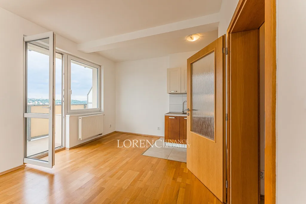 Pronájem krásného vzdušného a světlého bytu s balkonem i lodžií. Byt je umístěn v 5. patře bytového domu s výtahem. Dispozice bytu je 2kk s podlahovou plochou 55m², užitná plocha je 63 m². K bytu náleží balkon (4 m²) s nádherným výhledem do údolí i na část Prahy- Košíře, případně lodžie (4 m²) s orientací na západ.
