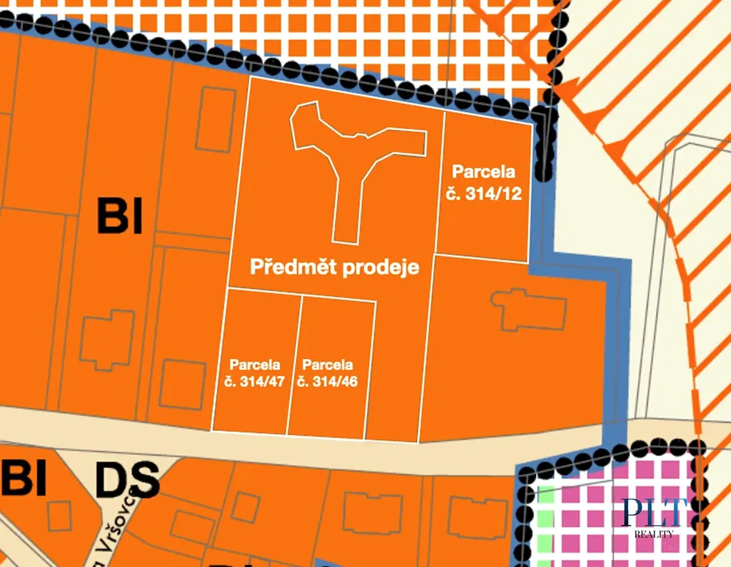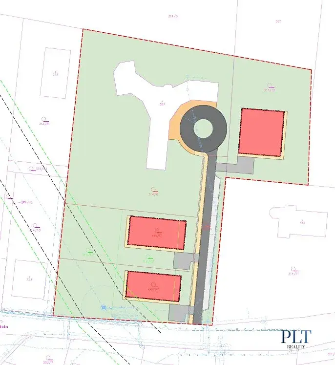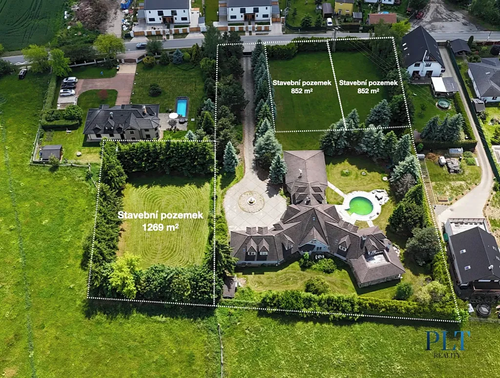 Jižně od hlavního domu se nachází další dvě parcely – č. 314/46 a č. 314/47, každá o velikosti 852 m². Tyto pozemky nabízejí široké možnosti využití: kromě klasické výstavby rodinných domů mohou sloužit také jako prostor pro soukromé sportovní nebo vzdělávací zařízení – např. mateřskou školu, jezdecký areál, tenisový kurt či golfové odpaliště. Vše v souladu s aktuálním územním plánem.