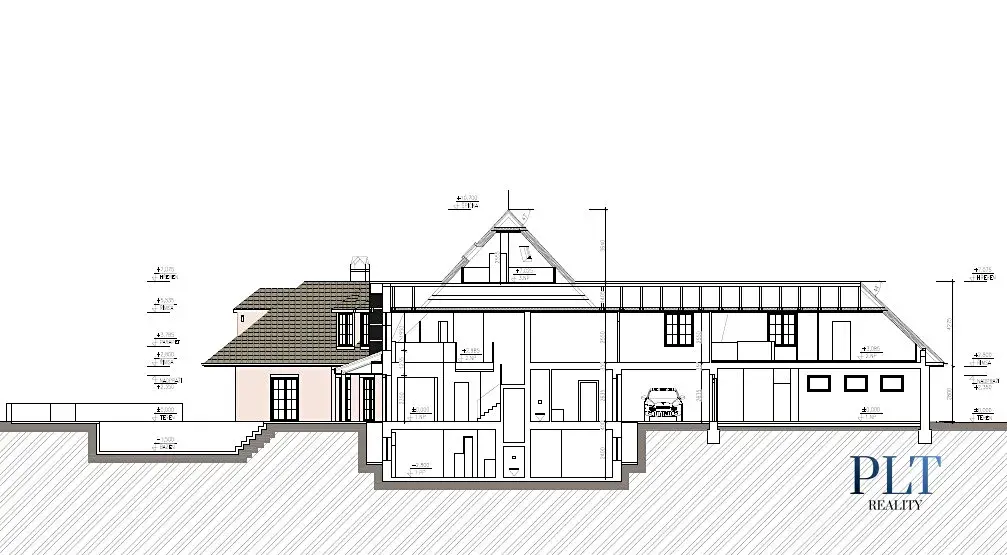 • 1.PP (99,5 m²): vinárna s krbem, posilovna, sklad, technická místnost, WC.