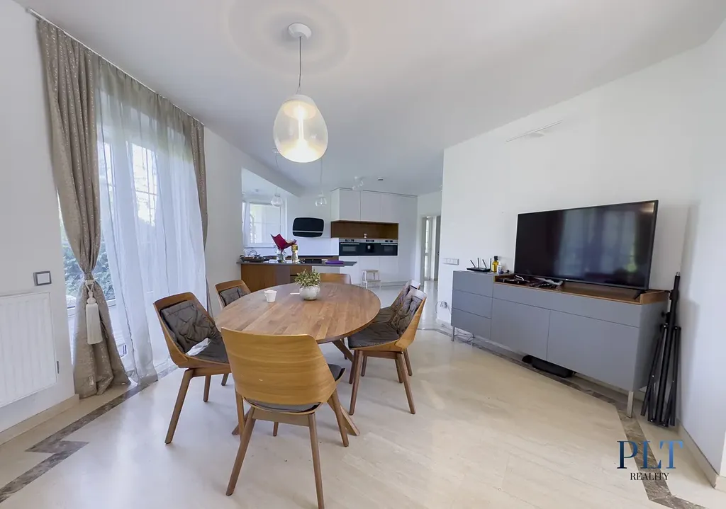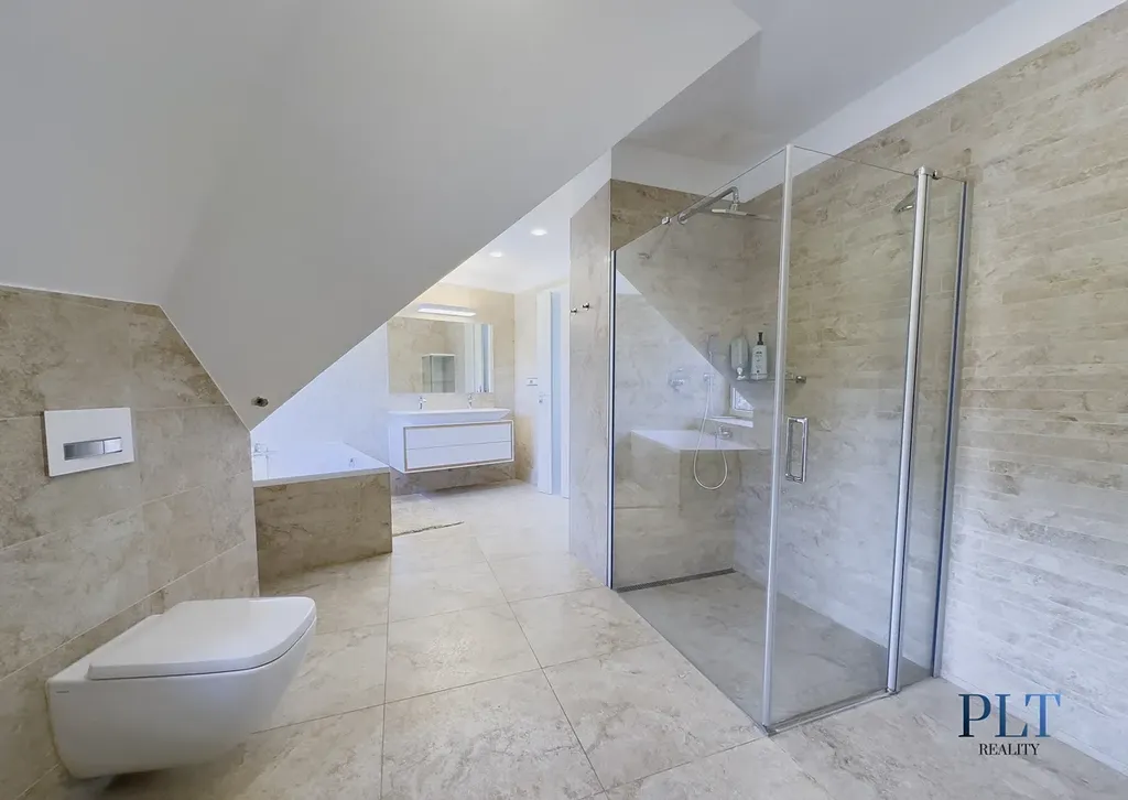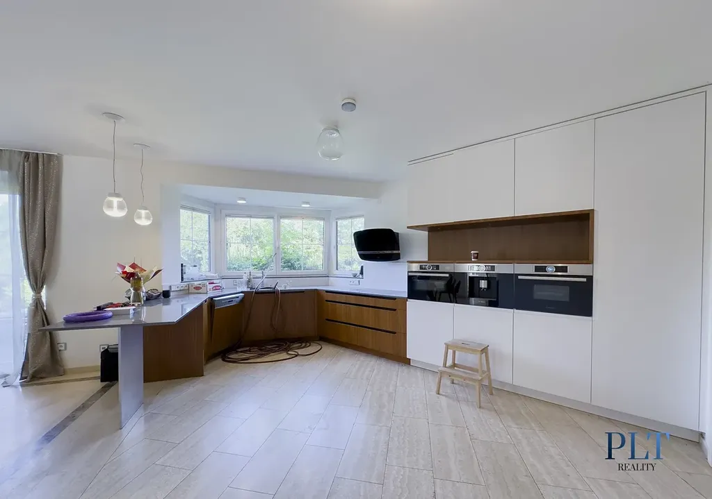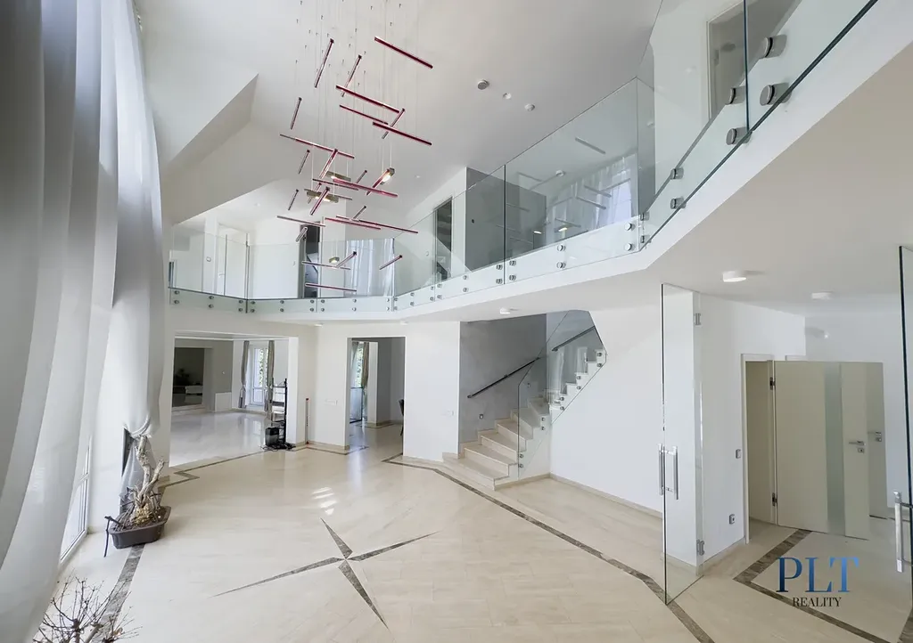 Vila zaujme svým nevšedním architektonickým řešením – centrální šestiboké jádro plynule přechází do tří samostatných křídel. V jednom z nich se nachází hlavní obytná část o dispozici 8+1, druhé je určeno k relaxaci a wellness, a třetí propojuje prostornou trojgaráž s podkrovním bytem 3+kk, který má vlastní vstup.