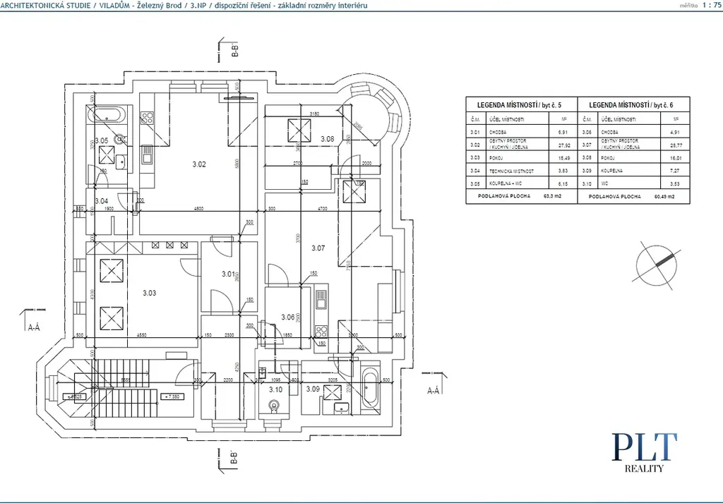 Plánovaná dispozice: na každém patře 2 byty