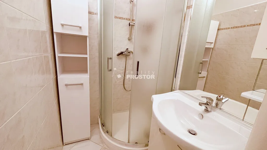 Vybavení: kuchyňská linka, plynový sporák, lednice s mrazákem, pračka, bezpečnostní vstupní dveře, velké vestavěné skříně na míru a prostorná šatní skříň v ložnici. Byt je částečně zařízený a nabízí dostatek úložného prostoru.