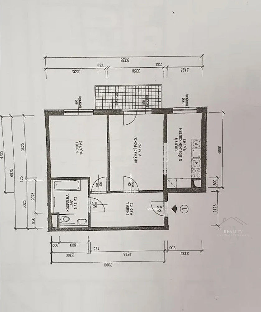 K bytu náleží balkon orientovaný do vnitrobloku a sklepní kóje.