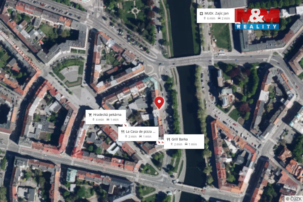 Pronájem zrekonstruovaného podkrovního bytu 2+kk v Hradci Králové na Tylově nábřeží. Celková plocha bytu je 68 m² a náleží k němu sklep 12 m². V bytě je kuchyňská linka s myčkou, podlahy PVC, v koupelně je vana. WC je samostatné. Okna mají vnitřní roletky a vnější markýzy. Byt bude vyklizený a volný k nastěhování dle dohody. Bydlení pouze pro nekuřáky a bez domácích mazlíčků. Dům prošel celkovou revitalizací a nachází se v lokalitě v centru města s veškerou občanskou vybaveností. Více informací v realitní kanceláři.