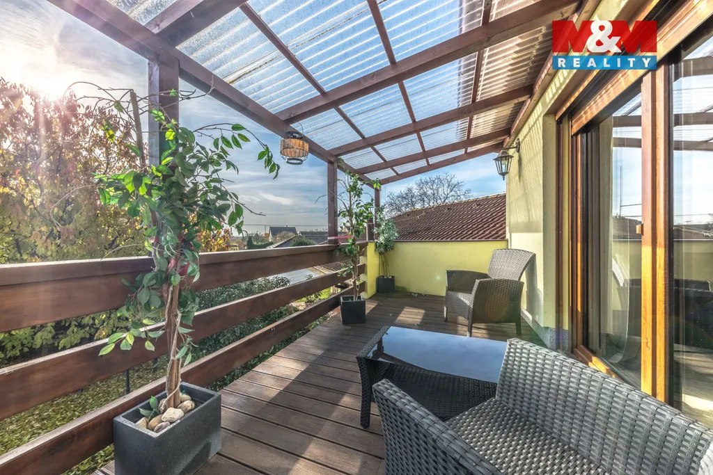 Pozemek 1 494 m² garantuje soukromí, tři terasy vytvářejí různé atmosféry dne, garáž pro tři vozy a kryté stání pro další dvě auta splní i náročné představy o komfortu.