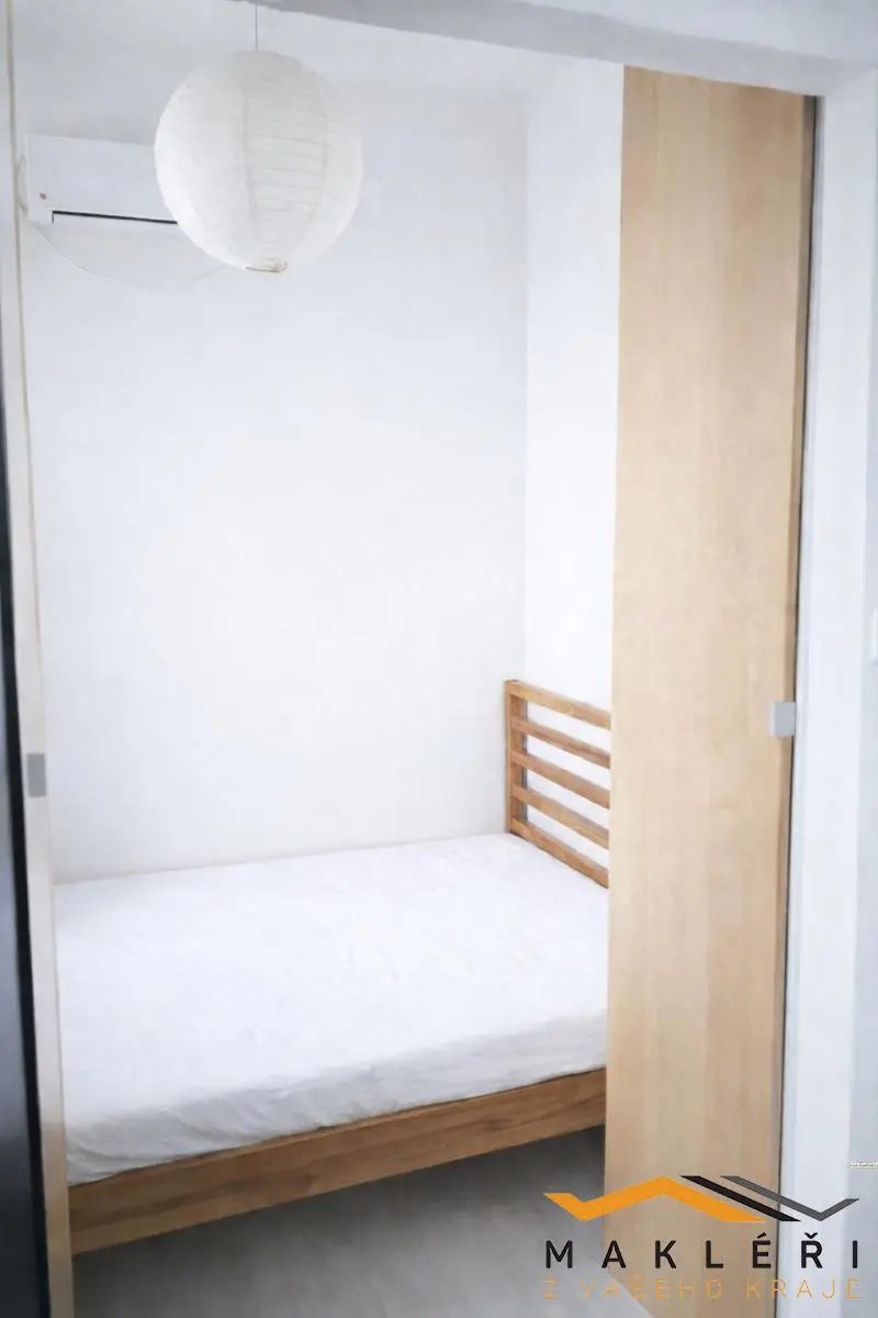 Byt je řešen jako praktický a otevřený obytný prostor s kuchyňským koutem. Díky umístění ve vyšším podlaží působí vzdušně a nabízí dostatek denního světla.