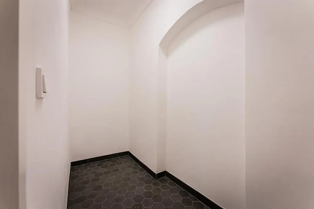 Zrekonstruovaný byt 2+kk (1 ložnice, 1 koupelna) v klasickém stylu, o celkové obytné ploše 94,15 m2, je situován v prvním patře historické budovy s výtahem, v prestižní lokalitě Malá Strana na Praze 1, ulice Vlašská.
