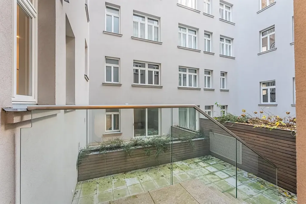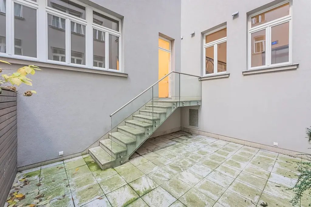 Zrekonstruovaný prostorný byt 3+kk (2 ložnice, 2 koupelny), s terasou (22,09m2), o celkové rozloze 125 m, je situovaný ve 2. patře kompletně zrekonstruovaného domu s výtahem, se zachovalými původními art deco prvky.