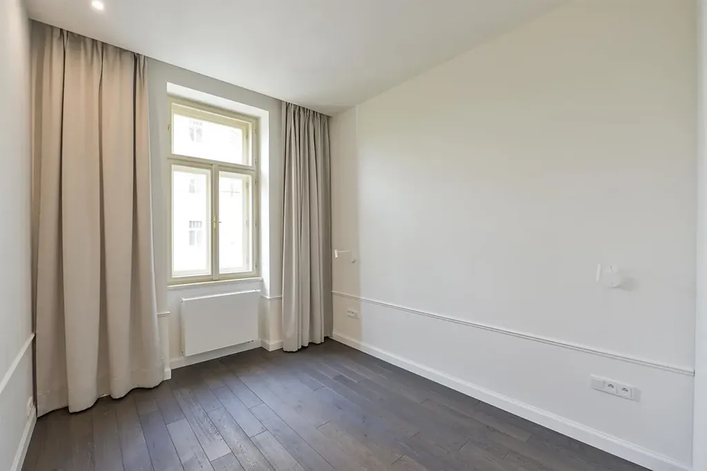 Designový byt 4+kk (3 ložnice, 2 koupelny) se dvěma balkony a klimatizací, o celkové obytné ploše 170 m2, je situován v 1. patře zrekonstruované secesní budovy s výtahem v populární rezidenční lokalitě Praha 2 Vinohrady, ulice Laubova.