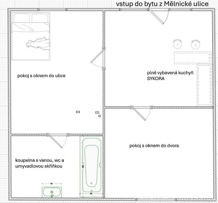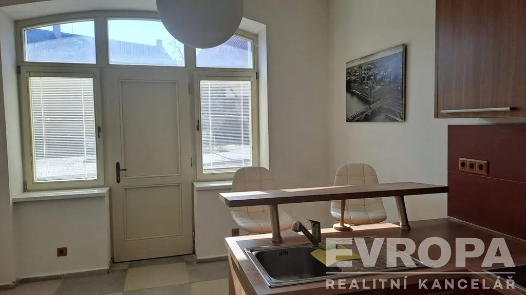 Exkluzivně nabízíme pronájem přízemního bytu v centru Mšena. Byt má dva vstupy jeden přímo z ulice a druhý vnitřkem domu. Přes ulici je malý parčík. Byt je po částečné rekonstrukci ve dvou místnostech jsou dřevěná okna s trojsklem, u pokoje do dvora jsou repliky secesních (špaletových ) oken s trojskly. Společné části domu jsou chráněny kamerovým systémem. Vstup do bytu je buď dveřmi s bezpečnostní vložkou přímo z ulice do obývací kuchyně nebo z domovní chodby do pokoje. Byt má značkovou rohovou kuchyň Sykora s vestavnými spotřebiči Electrolux : trouba, sklokeramická deska a mikrovlnná trouba, dřez s odkapávačem a pákovou baterií Franke, digestoř a lednice Beko. U kuchyně jsou 2 barové židle. Byt vytápíte termostaty řízenými topnými panely v podobě obrazů, alternativně lze využít/doplnit vytápěním funkčními kamny na dřevo. Druhá místnost má výhled do klidného dvora. Majitel nabízí možnost dodat zdarma starší manželskou postel a skříň. Na podlahách je dlažba. Z kuchyně se dále dá vstoupit do pokoje, za kterým je dále vstup do koupelny s WC. Zde je vana Rico, WC Jika Lyra plus, umyvadlo se skříňkou Jika, bojler Dražice na 100 l. Další tentokrát dvojité prosklené secesní dveře vedou z kuchyně do pokoje. V každé místnosti je dostatek zásuvek, aby se nepoužívala žádná prodlužovačka. K dispozici je dvůr s vybavením štípačka dřeva, stojan na kola, prostor na uskladnění dřeva. Mšeno je 15 km severovýchodně od Mělníka a je nazýváno vstupní branou do CHKO Kokořínsko. Kolem domu vede cyklostezka, historie Mšena sahá do roku 1306centrum je známé historickým jádrem s hrázděnými domy a kostelem. Město je ideálním východiskem pro procházky, sport a další aktivity, nabízí plnou infrastrukturu.