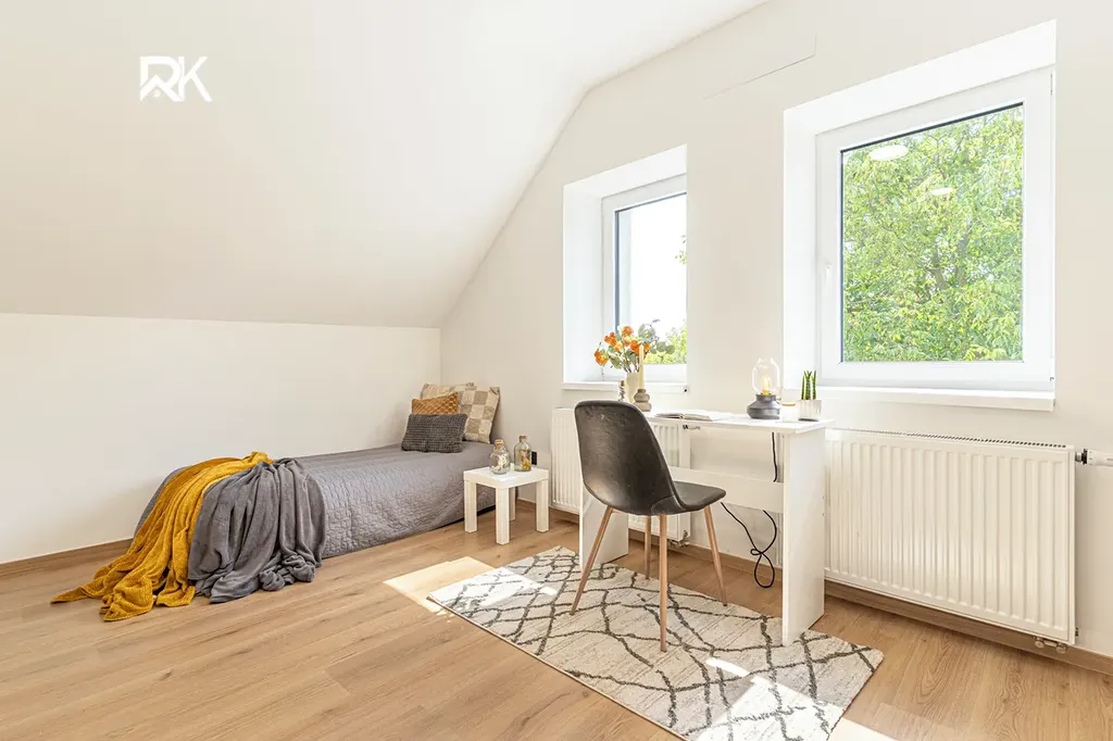 Dispozice 4+kk s užitnou plochou 140,4 m² je ideální pro komfortní bydlení. Pozemek o velikosti 568 m² má dva samostatné přístupy – z hlavní ulice k domu a ze zadní části zahrady, což umožňuje pohodlné vybudování garáže, zahradního domku nebo další stavby bez omezení vstupu na pozemek.