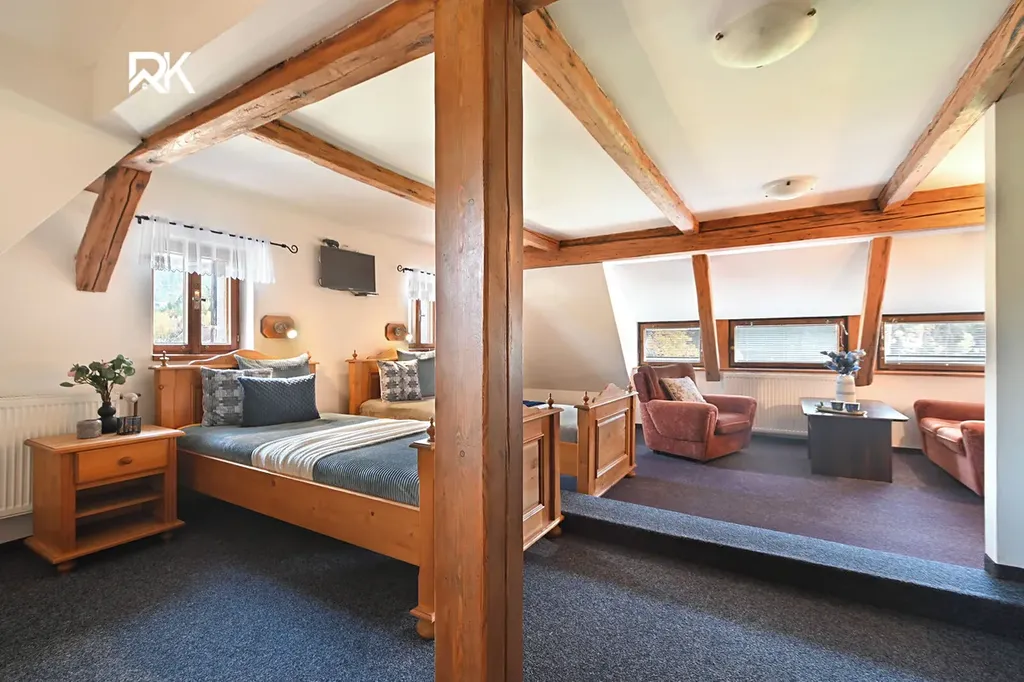 Hledáte výjimečnou investiční příležitost v srdci Národního Parku České Švýcarsko? Nabízíme k prodeji zavedený rodinný penzion s restaurací, situovaný v centru obce Jetřichovice, která je oblíbeným výchozím bodem pro výlety do nádherných skalních labyrintů. Z penzionu je výhled na Mariinu skálu, vzdálenou 1,5 km, a v blízkosti se nachází Dolský mlýn, známé místo z českých pohádek. Původní historická budova z 19. století prošla průběžnými rekonstrukcemi, přičemž se zachovaly autentické prvky jako klenbové stropy v přízemí a suterénu. Renovace zahrnovaly mimo jiné nové elektroinstalace, vodoinstalace, střešní krytinu, sluneční kolektory a Eurookna. Penzion od roku 1999 provozuje jediný majitel, což přineslo stabilní klientelu. Penzion nabízí restauraci s kapacitou pro 60 hostů, útulnou vinárnu s krbem pro 24 osob a profesionálně vybavenou nerezovou kuchyni. Ubytovací kapacita čítá 45 lůžek v 18 pokojích, z nichž každý je vybaven vlastní koupelnou, televizí a Wi-Fi připojením. Doplňkový servis zahrnuje kadeřnictví, kolárnu s nabíjením elektrokol a prostor pro wellness, který čeká na dokončení rekonstrukce. Technické zázemí zahrnuje tři garáže, vlastní parkoviště s kapacitou pro 20 aut, dvě bytové jednotky (3+1 a 2+kk) a pochozí půdní prostory, kde je možné vybudovat další jednotky. Objekt využívá ústřední vytápění na LTO s částečným ohřevem teplé vody pomocí solárních kolektorů a dvěma krby pro komfortní vytápění. Penzion má výbornou dopravní dostupnost – je snadno přístupný po asfaltové příjezdové cestě, v blízkosti vlakového nádraží, autobusových zastávek i MHD. Tato nemovitost je ideální pro podnikatele, kteří hledají stabilní investici s vysokým potenciálem návratnosti v jedinečné lokalitě. V případě zájmu o prohlídku nás neváhejte kontaktovat.