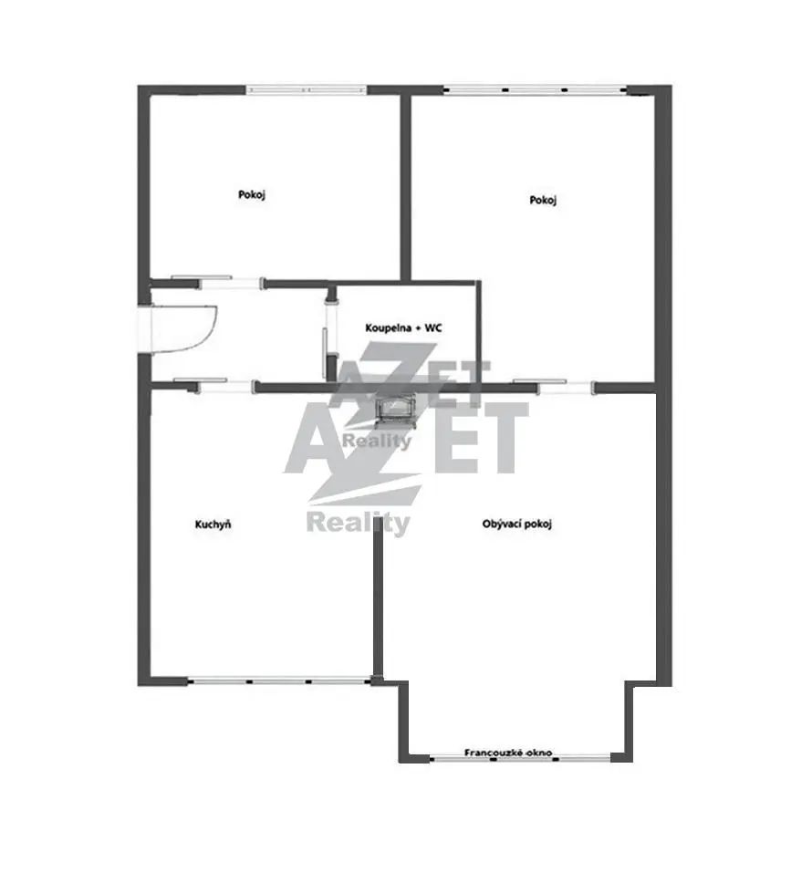 Byt 3+KK, pokoj s kuchyňským koutem, dětský pokoj, ložnice, koupelna s WC, zádveří.