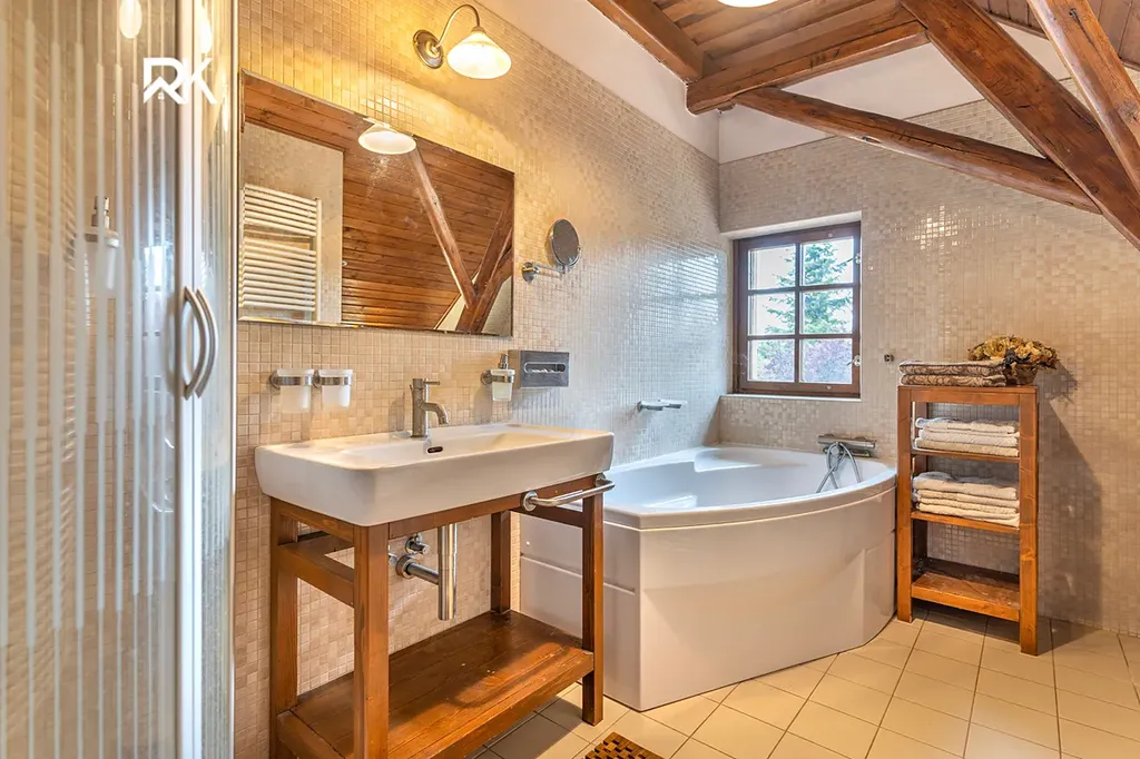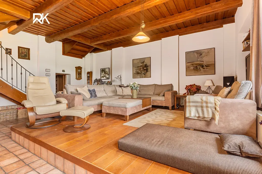 Dům má užitnou plochu 375 m² a díky své dispozici jej lze rozdělit na dvě samostatné bytové jednotky, což nabízí široké spektrum využití – od vícegeneračního bydlení až po kombinaci bydlení a podnikání.