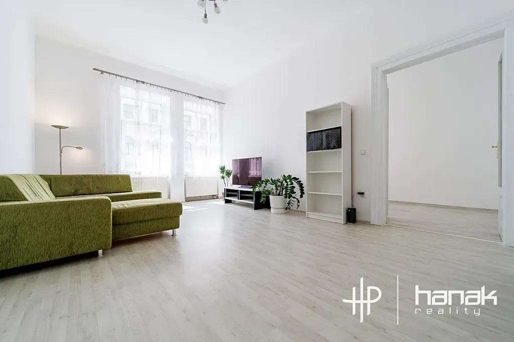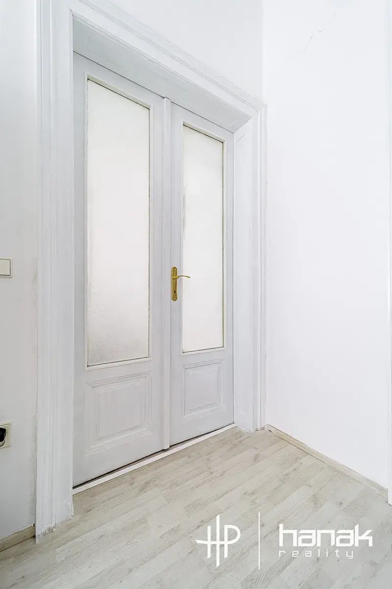 Příjemnou atmosféru zde tvoří vysoké stropy a krásné, dřevěné dveře. Byt byl rekonstruován před 20 lety, koupelna je zánovní, vše je velmi udržované. Dispozice umožňuje předělání na 4+1.