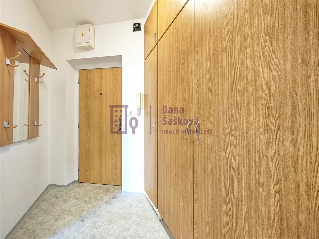 Byt orientovaný na východ je vybavený kuchyňskou linkou s vestavěnou sklokeramickou varnou deskou a elektrickou troubou, dále chladničkou, mikrovlnou troubou, jídelním stolem s židlemi, pohovkou, komodou, skříní, televizí, rozkládací postelí a v chodbě vestavěnou šatní skříní.