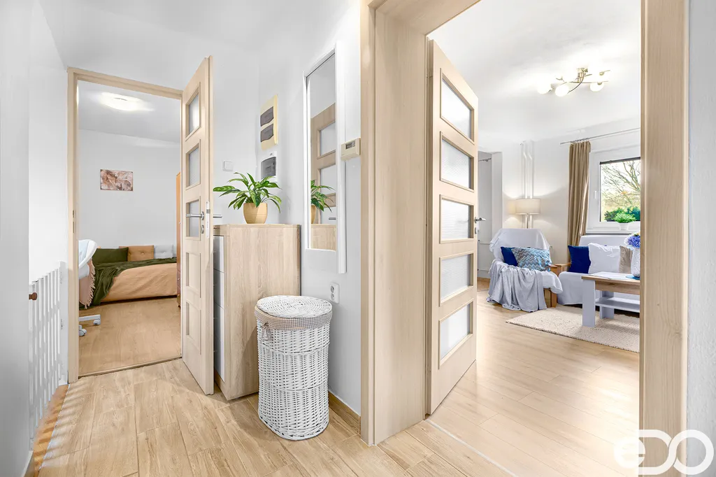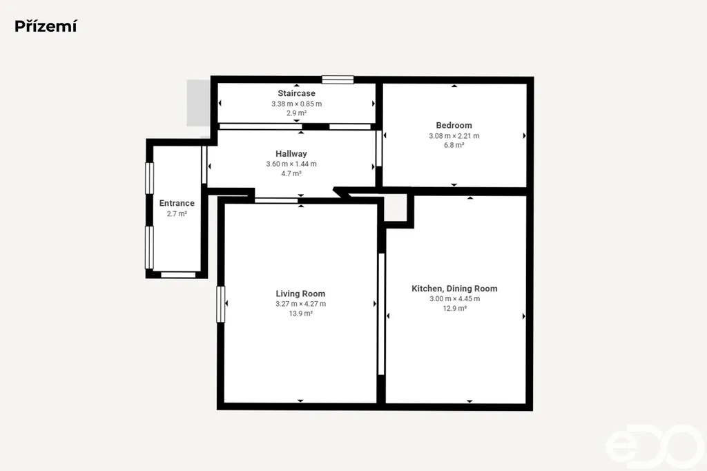 Interiér domu nabízí prakticky řešený obývací pokoj s kuchyňským koutem a přímým vstupem na terasu, kde si můžete užívat posezení s rodinou či přáteli. Dále jsou zde tři samostatné pokoje, koupelna a potřebné zázemí pro komfortní rodinný život.