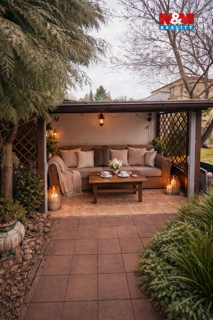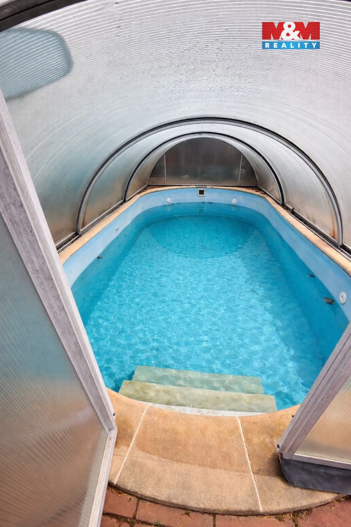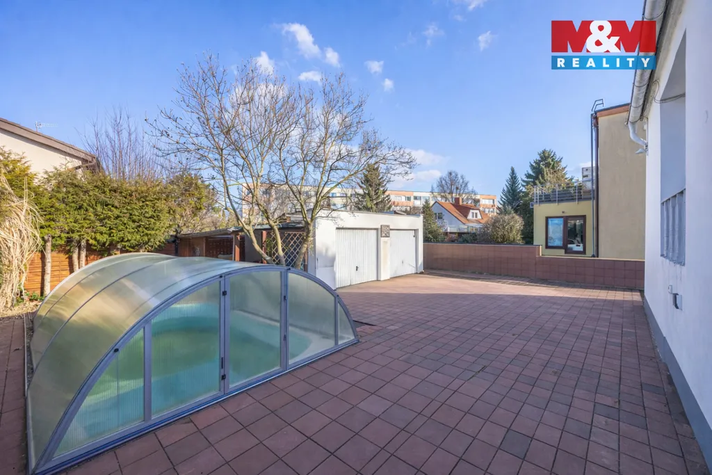 Součástí je udržovaná zahrada s bazénem, altánem a grilovací zónou pro příjemné posezení. Na pozemku se nacházejí dvě garáže a příjezdová komunikace s možností parkování více vozidel.