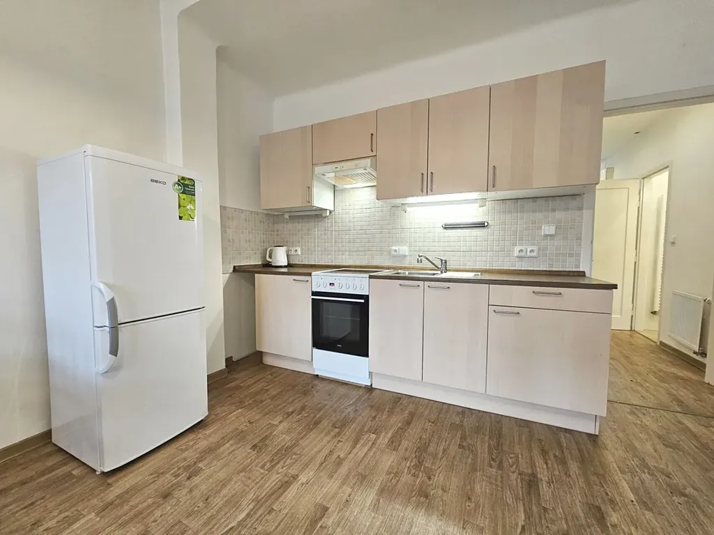 Nabízíme ke koupi pěkný byt 2+kk (48,5 m2) ve třetím patře cihlového domu na Praze 4, Krč, ulice Za Zelenou liškou, mezi stanicemi metra C - Budějovická a Pankrác.