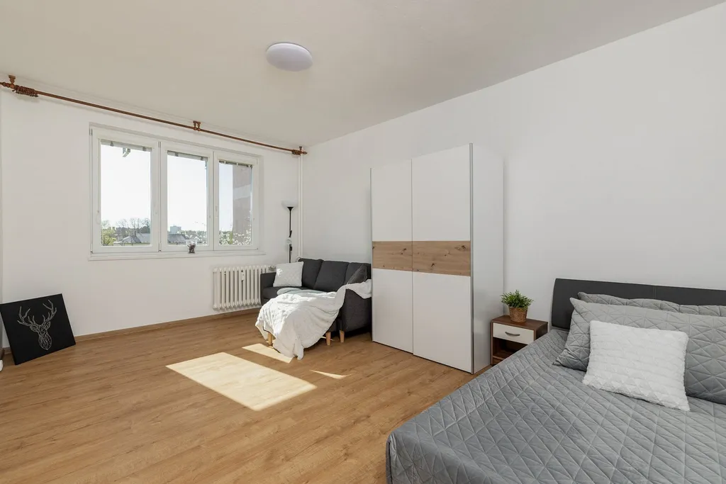 Nespornou výhodou tohoto bytu je jeho kompletní vybavenost, takže stačí pouze osobní věci a můžete ihned plnohodnotně bydlet. Orientace na jihovýchod zajišťuje dostatek denního světla po celý den a jako největší bonus vlastní balkón.