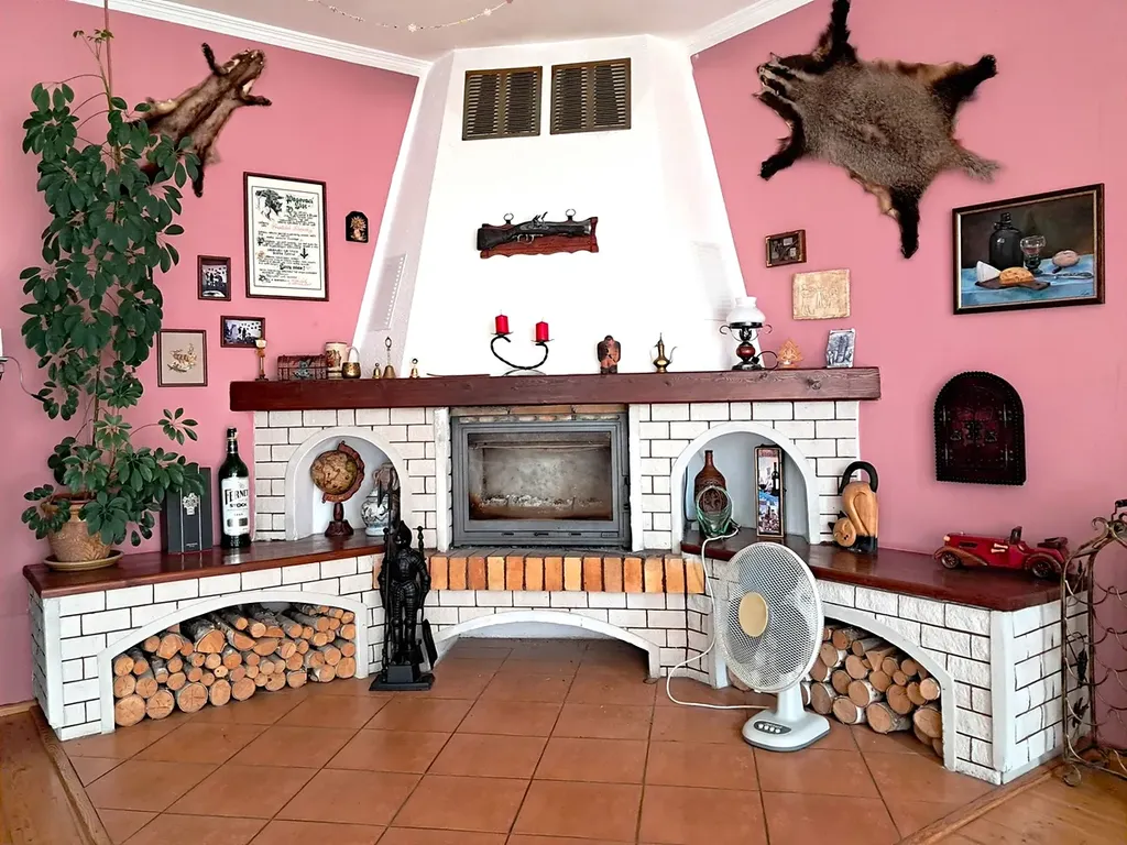 V přízemí obytné části se nachází předsíň, plně vybavená kuchyň s kachlovými kamny, obývací pokoj s krbem, ložnice, koupelna a samostatné WC.