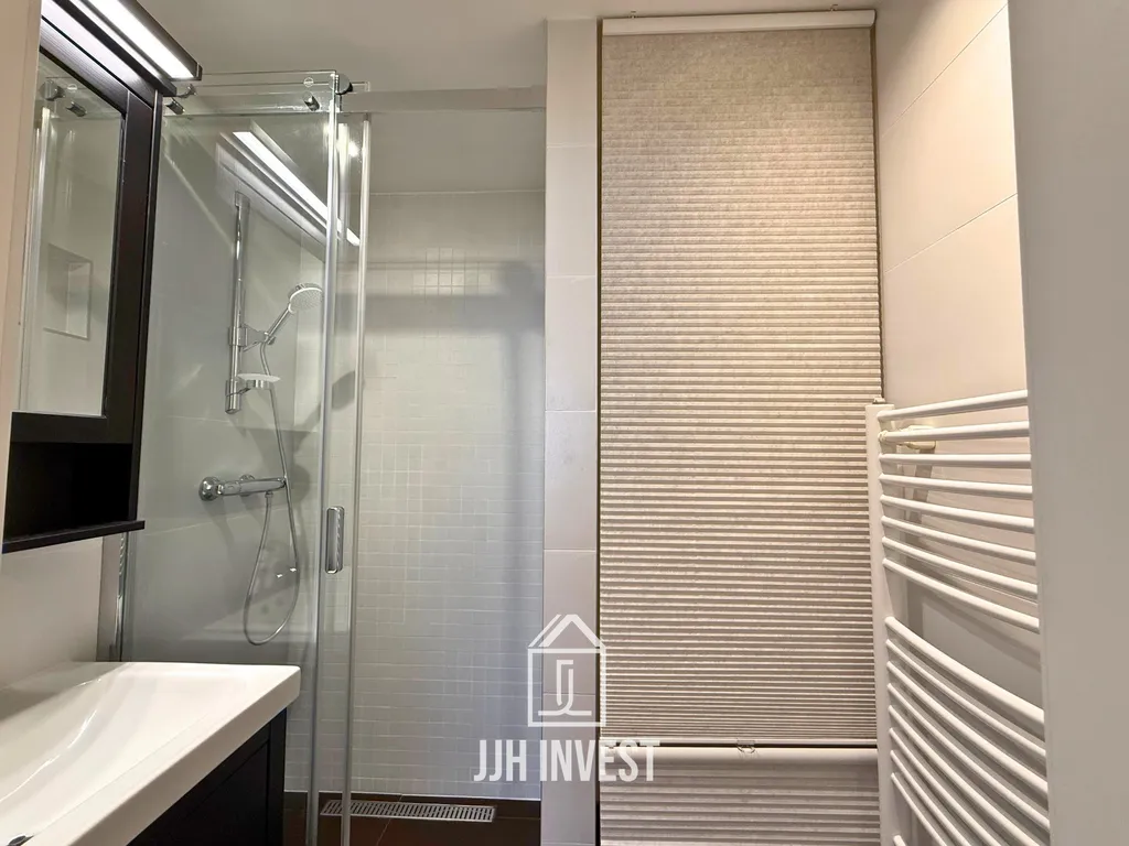 Byt o velikosti 54,8 m² s balkonem 3,6 m² se nachází ve druhém nejvyšším patře komorního domu s pouhými 12 jednotkami. Orientace do zahrady zajišťuje maximální klid, soukromí a otevřený výhled bez ruchu ulice. Celý areál je oplocený a umístěný na uzavřeném pozemku, což přináší vyšší míru bezpečí. K dispozici je sklep 1,2 m², sdílená sušárna a prostorná společná zahrada s posezením. Garáž o velikosti 13,9 m² se nachází na uzavřeném pozemku přímo u domu a nabízí pohodlné parkování i dostatek prostoru pro uskladnění.