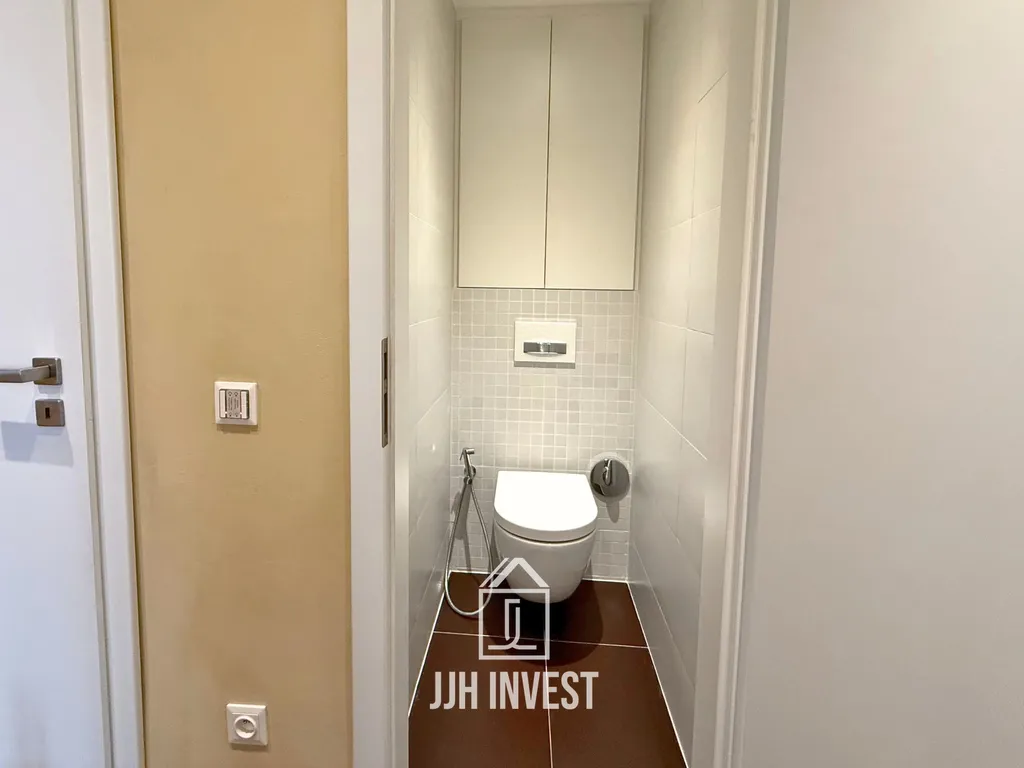 Dispozice: obývací pokoj se sklopnou manželskou postelí, díky které lze byt využívat obdobně jako 3+1, dále samostatný pokoj, kuchyni, koupelnu a oddělené WC. Pračka se sušičkou je prakticky umístěna ve výklenku chodby. Byt je vybaven inteligentním systémem Siemens (KNX) pro regulaci vytápění a osvětlení, senzory CO₂ a zabezpečovacím systémem.