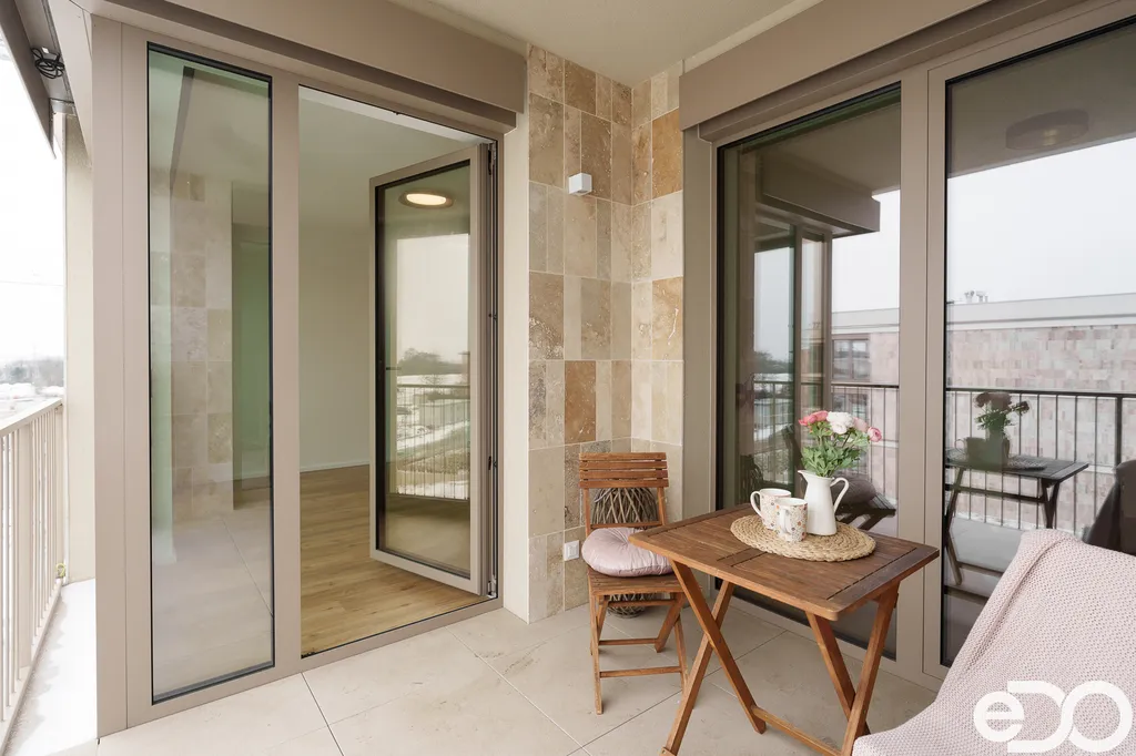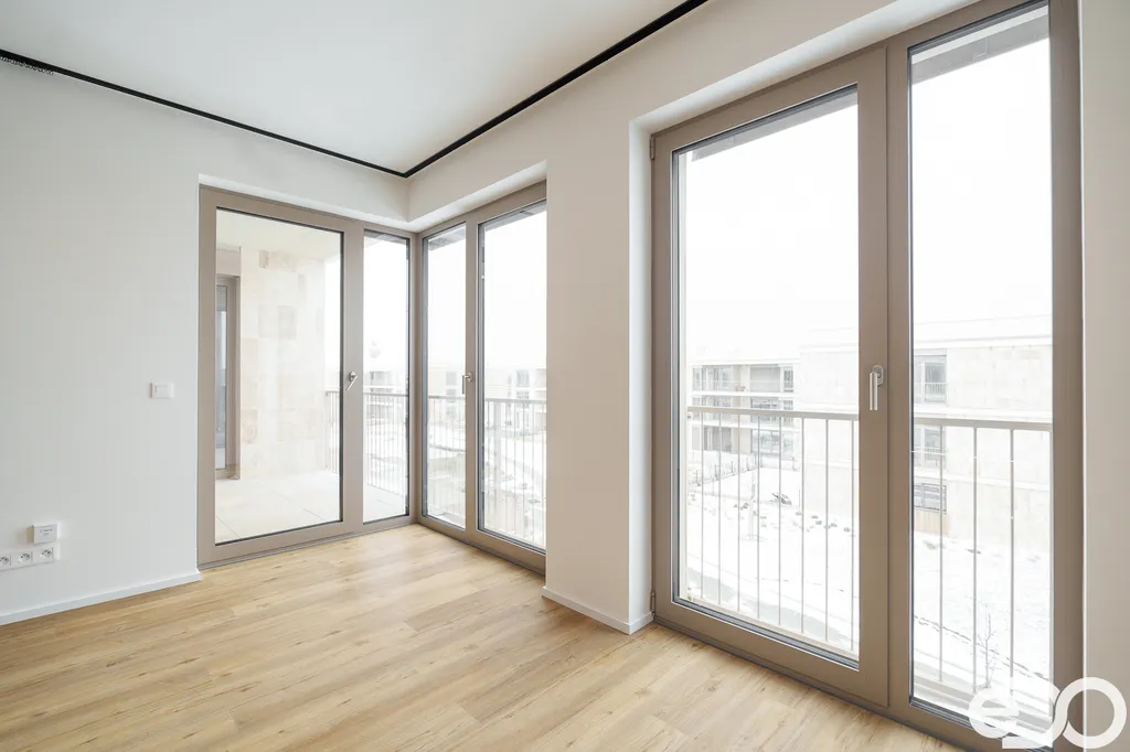 Byt se nachází v novostavbě a čeká na svého prvního nájemníka. Moderní dispozice nabízí prostorný obývací pokoj s kuchyňským koutem, dvě samostatné ložnice, koupelnu a dostatek úložného prostoru. Ze všech pokojů je vstup na terasu o velikosti 8,30 m², která poskytuje příjemné místo k relaxaci.