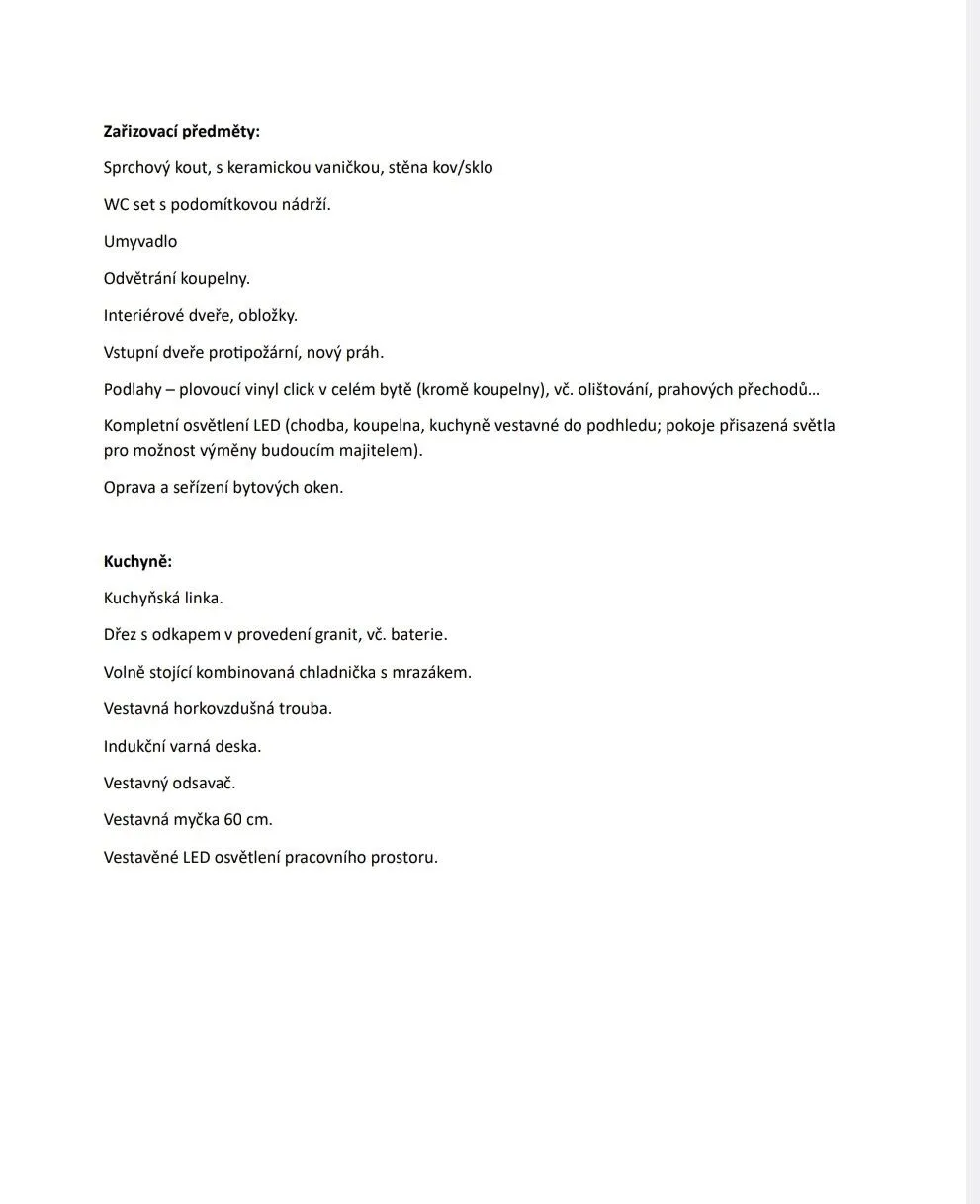 Nabízím Vám exkluzivně k prodeji nádherný, plně a nově zrekonstruovaný byt 1+1 o výměře 39m2 v 1.patře revitalizovaného, panelového domu s výtahem, ulice Kralovická, Plzeň - Bolevec. Byt tvoří koncept kuchyně s menším obývacím koutem na který navazuje samostatný pokoj. Byt prošel profesionální rekonstrukcí v tomto roce 2026 (komplexní, technický soupis prací přikládám ve fotogalerii). Kuchyň je vybavena novou kuchyňskou linkou s vestavěnými spotřebiči (myčka 60cm, indukční varnou deskou, vestavnou horkovzdušnou troubou, samostatnou kombinovanou chladničkou s mrazákem). Okna jsou nasměrována do stromů, byt tak působí vzdušně a přívětivě. Do kuchyně se vám vejde dle přiložené vizualizace i sedací souprava i jídelní stůl, a tak můžete tento prostor využívat variabilně. Samostatný pokoj skýtá příjemný prostor pro vaši ložnici i například menší pracovnu, dle libosti. Byt doplněn novými interiérovými dveřmi v bílém provedení a posuvnými dveřmi do pouzdra do koupelny. Položena je nová plovoucí vinyl click systém podlaha. Koupelna v jemném, šedém tónu podtržena praktickým sprchovým koutem, opatřena chytře zvoleným umyvadlem, toaletou a přípojkou na pračku (40cm). Majitel dbal na důkladné provedení stropů formou sníženého sádrokartonového podhledu, podhled je parotěsně, tepelně i hlukově izolovaný, zde osazena nová LED osvětlení, nové rozvody internetu a TV samozřejmostí. Kralovická ulice v Bolevci se stala atraktivní lokalitou pro bydlení i investici. Fond oprav činí: 975 Kč. V dosahu domu se nachází supermarkety, četné množství spojů MHD, sportovní vyžití a nejkrásnější soubor Boleveckých rybníků k procházkám, koupání a dalším aktivitám. Najdete zde klidné a kvalitní zázemí pro život. Do centra je to do 10 minut autem, parkování před domem. Nechte se inspirovat naší přiloženou vizualizací a přijďte se zabydlet jako první do bytu, který je zde pro vás připravený. Vhodný i jako investice do budoucna, další fotografie připravujeme, prohlídka umožněna.