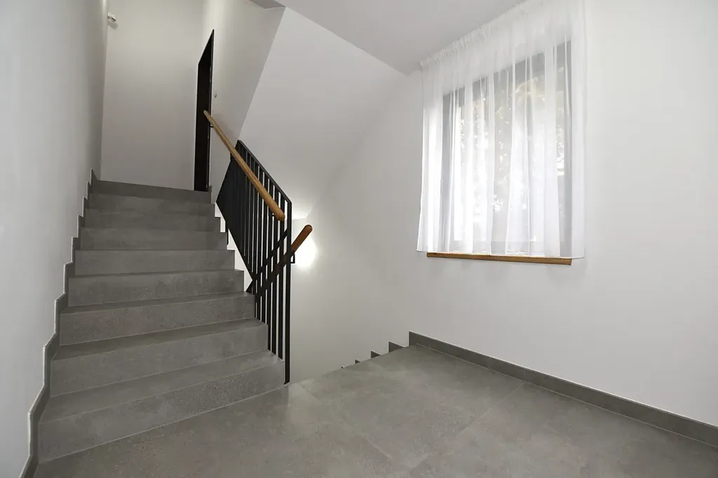 Nový, ještě neužívaný byt v nadstandartním provedení o dispozici 2+kk s lodžií, má podlahovou plochu 49,5 m2 + 1,9 m2 lodžie a nachází se v přízemí třípodlažní zděné novostavby v ulici Přemyslova, pouze 7 min. chůze od centrálního náměstí v Říčanech u Prahy.