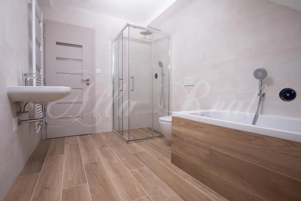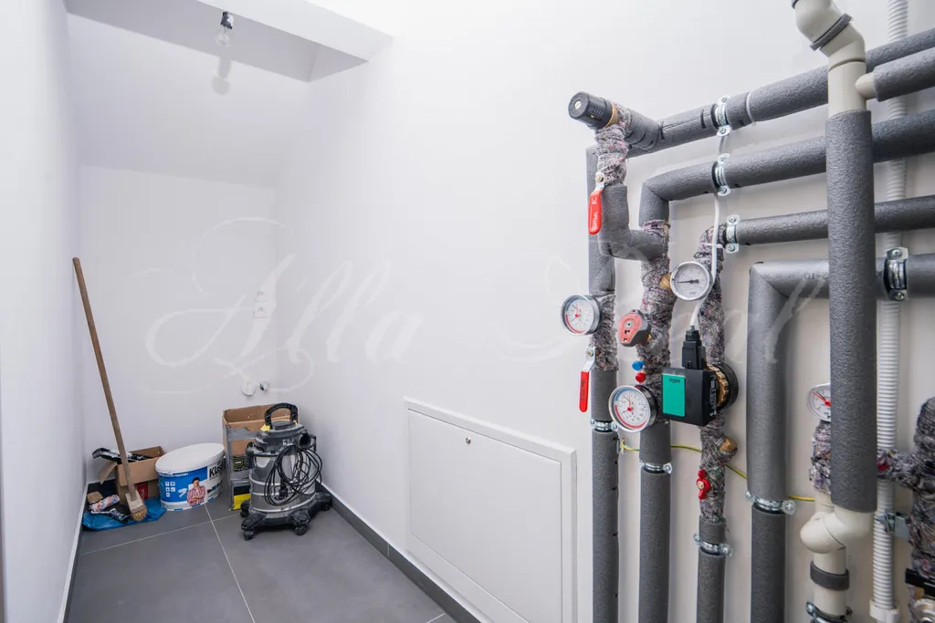 Dům byl dokončen v roce 2025, je tedy zcela nový a připravený k okamžitému nastěhování. Tepelnou pohodu zajišťuje podlahové vytápění, okna jsou opatřena trojskly, a venkovní žaluzie chrání před slunečním zářením i hlukem. Systém rekuperace vzduchu zaručuje čerstvý vzduch, zatímco vinylové podlahy jsou nejen estetické, ale i praktické na údržbu. Všechno je navrženo tak, aby poskytovalo maximální komfort.