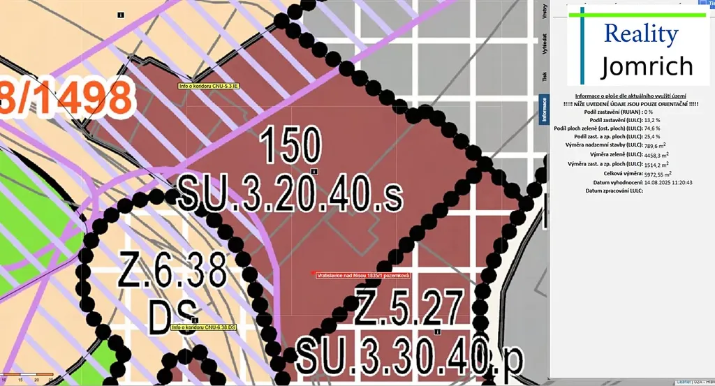 S domem souvisí i stavební pozemek o celkové výměře 1.954 m2, který je dle územního plánu určen k výstavbě rodinného domu, skladu a opraven nebo drobného podnikání, typu staveb smíšené obytné všeobecné. Na pozemku je vlastní studna a dřevěná pergola. Maximální zastavitelnost pozemku je zhruba 20 %, stavby do výše 16 m tj. 3 nadzemní podlaží + za splnění určitých podmínek i obyvatelné podkroví. Tento stav nemovitosti jako celku je optimální pro toho, kdo ji jako celek dokáže využít a zkombinuje bydlení s podnikatelskou činností různého druhu.