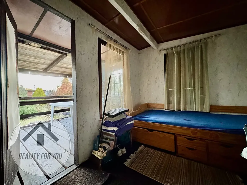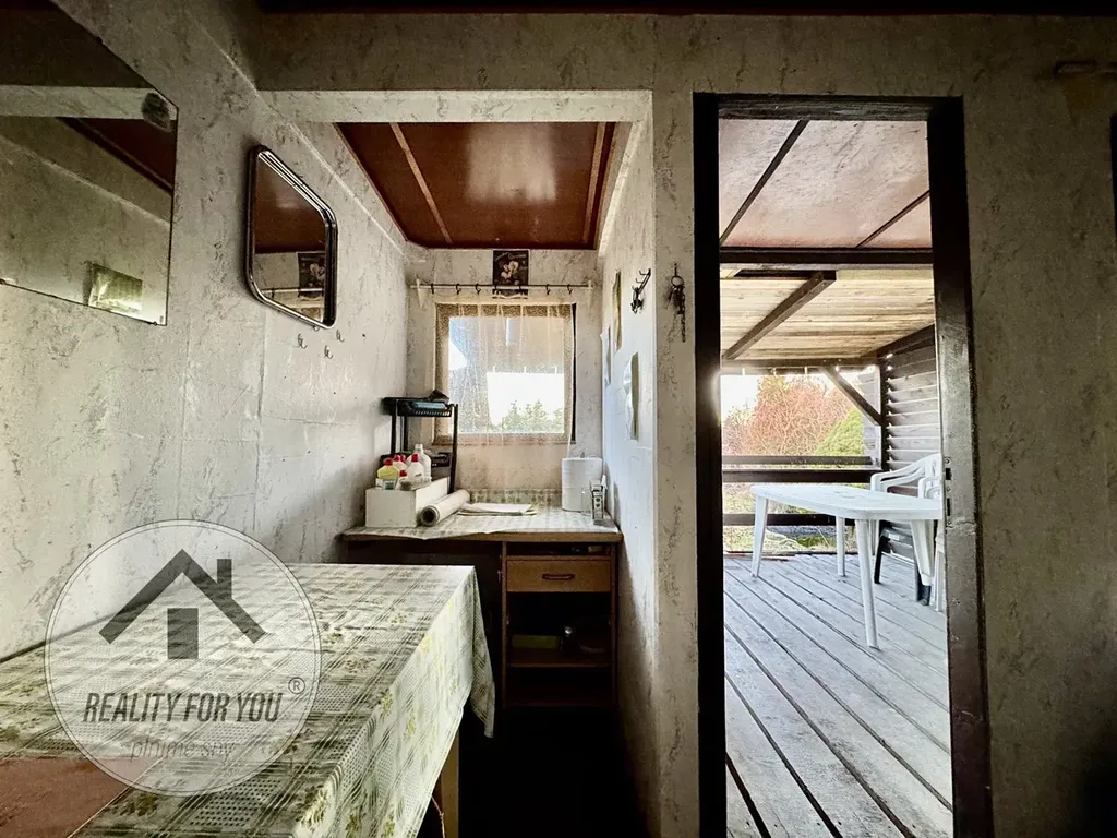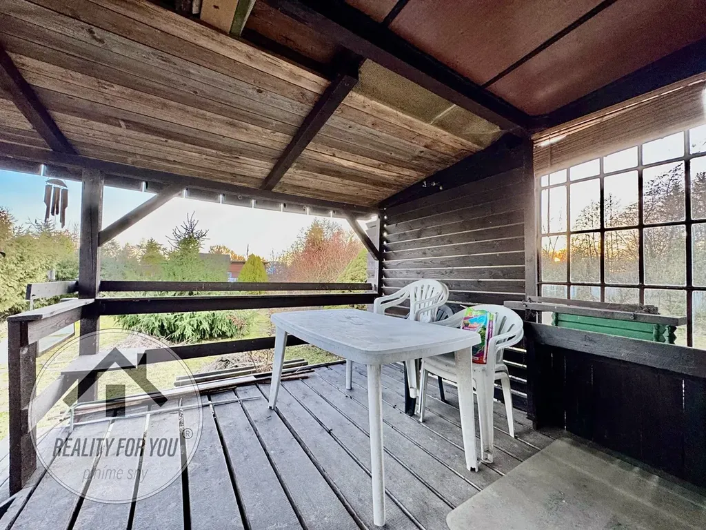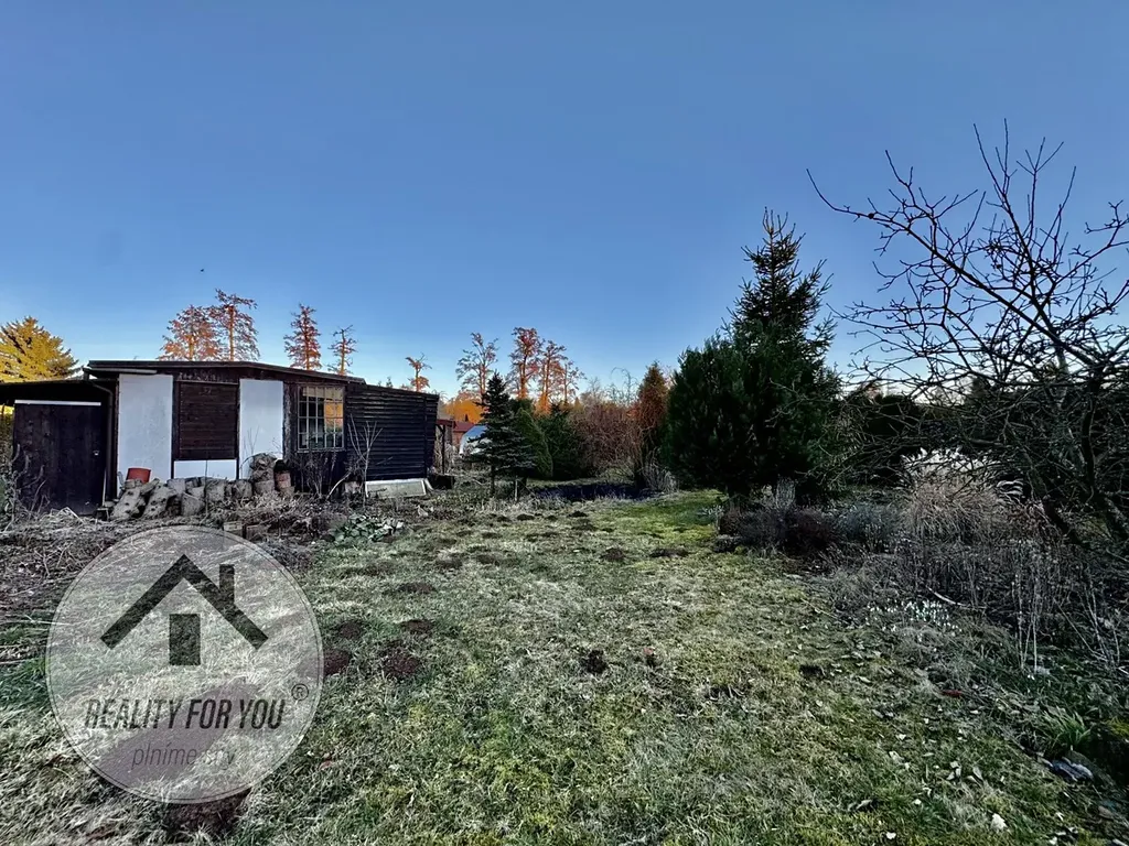 Zahrádka o výměře 371 m2 je rovinatá a kompletně oplocena. Na pozemku je stavba dřevěné chatky s terasou, která nabízí zázemí i možnost přespání.