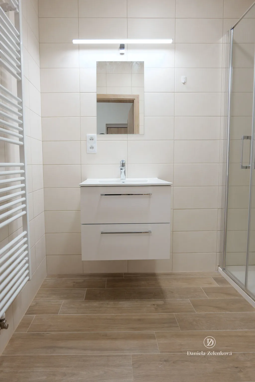 Interiér působí čistě a moderně, komfort zajišťuje kombinace podlahového vytápění a radiátorů, takže si teplotu snadno přizpůsobíte během celého roku. Byt je částečně zařízený – k dispozici je kuchyňská linka se spotřebiči a sedací souprava, což umožňuje pohodlné bydlení bez nutnosti dalších větších investic.