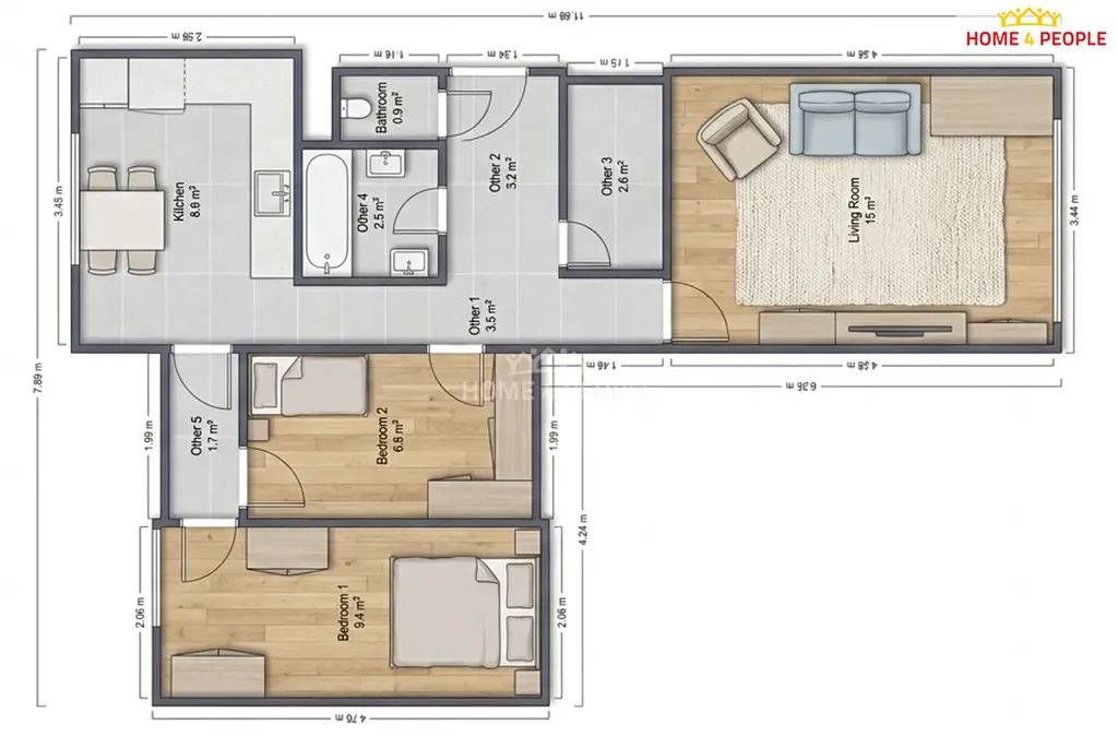 Byt má příjemnou orientaci na severovýchod a jihozápad, což zajišťuje dostatek denního světla během celého dne a zároveň možnost přirozeného větrání.