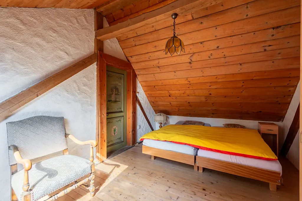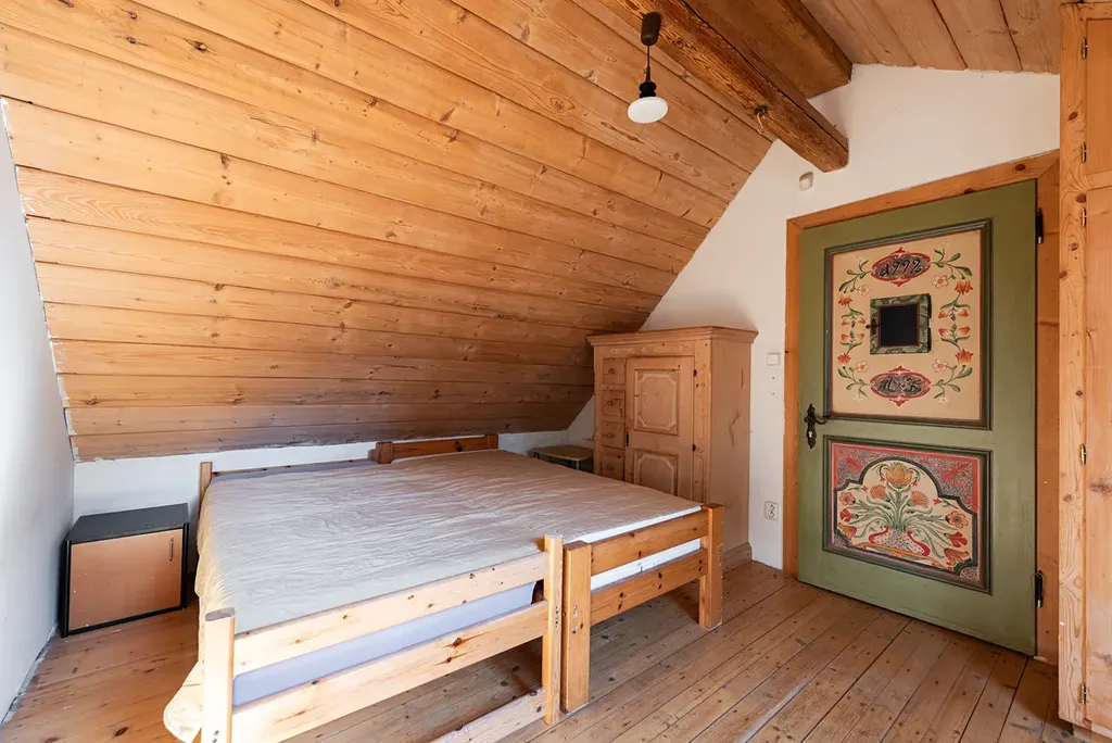 Dům byl jedním z prvních domů ve vesnici a v minulosti sloužil jako sídlo starosty. Dýchá na vás historie, solidní řemeslná práce a příjemná atmosféra. Celý interiér je citlivě zařízen kvalitním masivním dřevěným nábytkem a bohatě doplněn dřevěnými prvky a trámy, které dodávají prostoru jedinečný charakter stylové roubenky.
