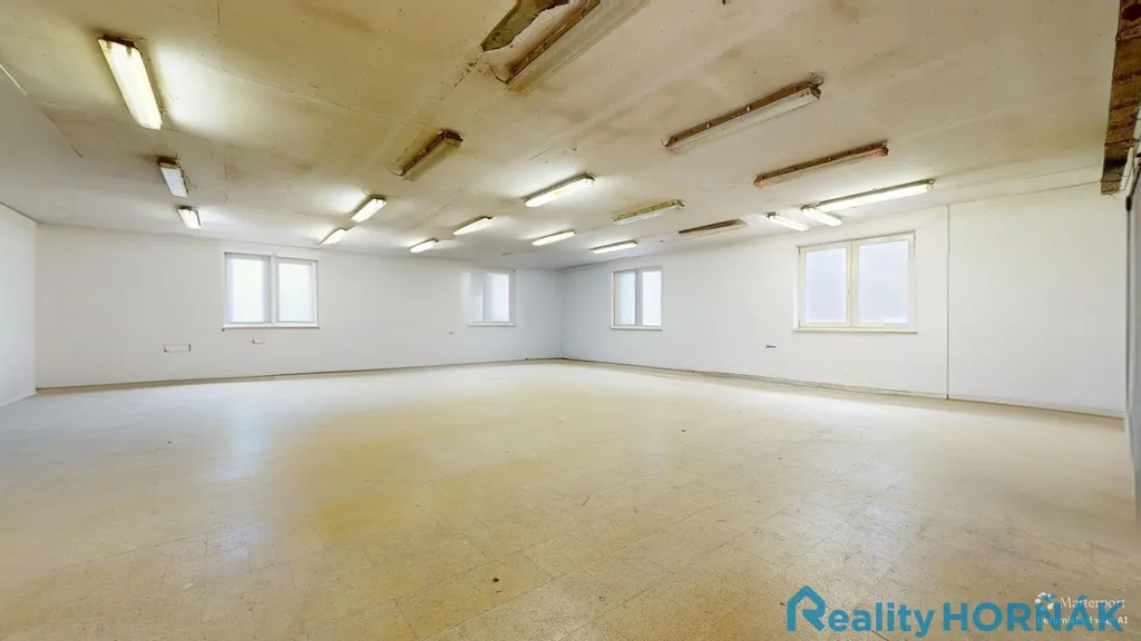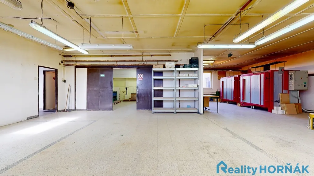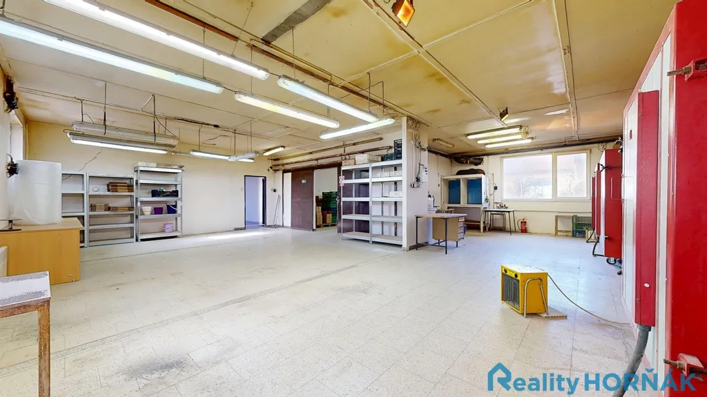 Hlavní budova nabízí tři výrobní haly (130,5 m², 105,1 m² a 138,5 m²), navazující skladové prostory (22,8 m² a 24,4 m²), administrativní zázemí (kancelář 16,5 m²) a sociální část tvořenou kuchyňkou (14,0 m²), šatnou (16,2 m²), dvěma koupelnami (6,6 m² a 5,7 m²), třemi WC a chodbou (12,3 m²). Vedlejší objekt tvoří samostatná hala o výměře 126,4 m² a navazující sklad 30,2 m². Tento prostor je vhodný jako technický sklad, manipulační zázemí nebo oddělená provozní část.