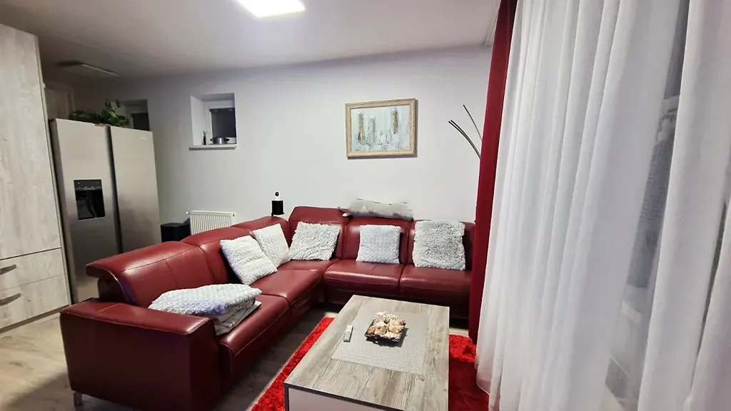 Bytově upravený prostor se nachází v přízemí dvoupatrového cihlového zatepleného domu, z obývacího pokoje je výstup francouzským oknem na zahrádku (20 m2) s terasou pro příjemné posezení a oplocením ze dřeva. Pozemek je pronajatý od obce s poplatkem 1.500,- Kč/ročně.