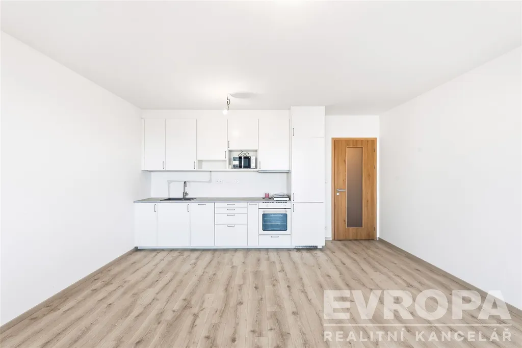 V bytě je instalována nová, moderní a plně funkční kuchyňská linka se spotřebiči.
