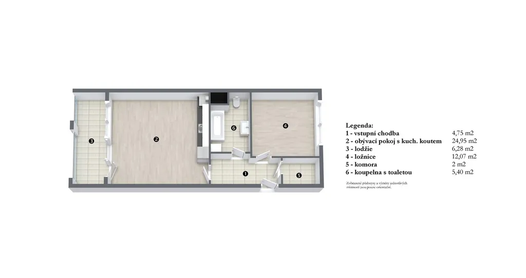 • Balkon orientovaný do klidného vnitrobloku: 6,28 m²