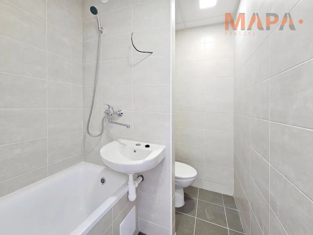 Součástí tohoto hezkého bytu po rekonstrukci je zděná koupelna s vanou, WC a kuchyňská linka.