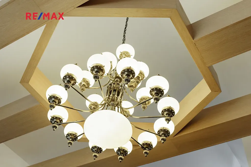 - stylové dřevěné prvky, parkety, lustry a elegantní detaily v celém interiéru