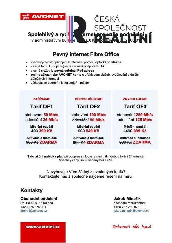 - velikost 25,08 m2, kancelář 422, cena nájemné 4.774,52 Kč + energie a služby 2.331,48 Kč (7.106,- Kč) + DPH, k dispozici ihned,