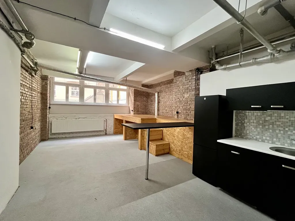 Prostory po kompletní rekonstrukci v domě s výtahem. Okna do dvora s orientací na západ. Hlavní obytný prostor s industriálními prvky, jež vytváří zajímavou atmosféru. Kobercová krytina, dlažba. Vybaveno kuchyňskou linkou s varnou deskou a el. troubou, lednicí a pračkou.