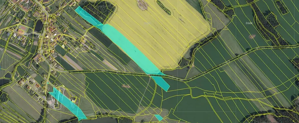 Pozemky se nachází v obci Krásněves a jejím okolí. Celková výměra činní 37 375 m2 z toho spoluvlastnický podíl id. 1/3 činní 12 458 m2.